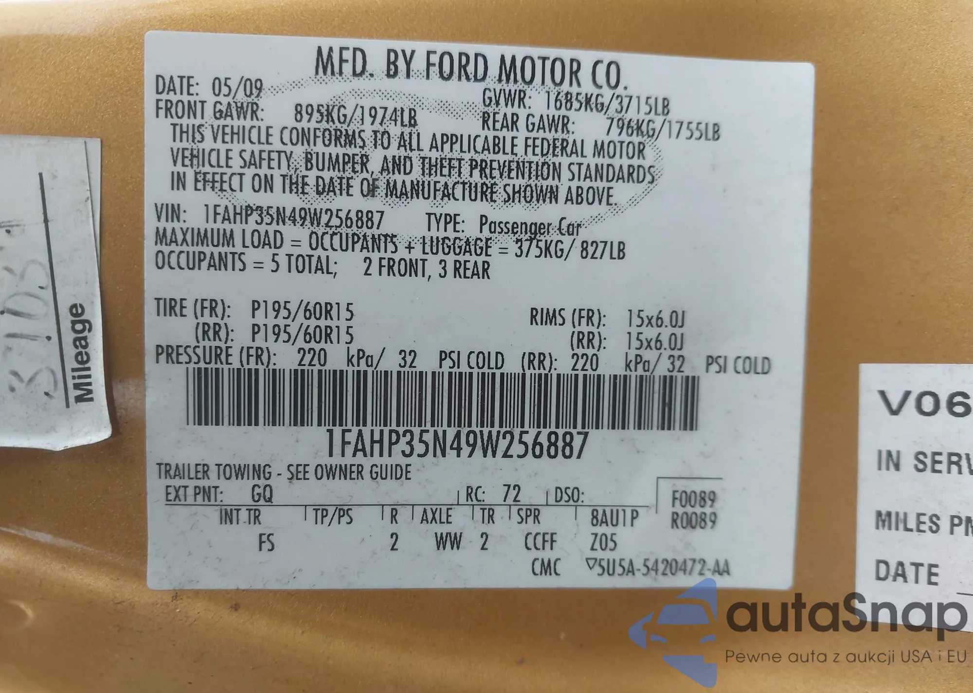 LOT: 43436744 VIN: 1FAHP35N49W256887
