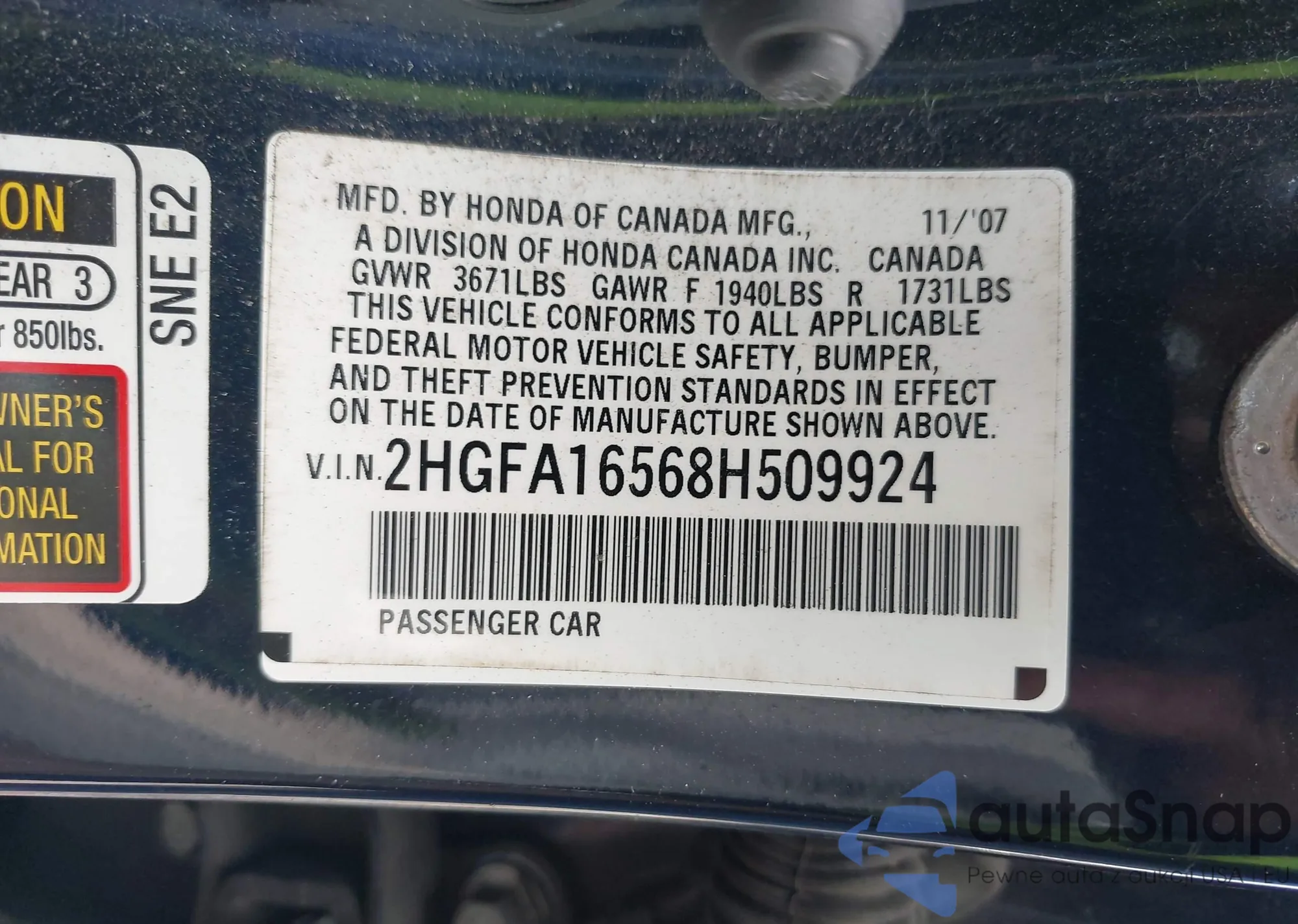 • VIN 2HGFE1F70PH311067