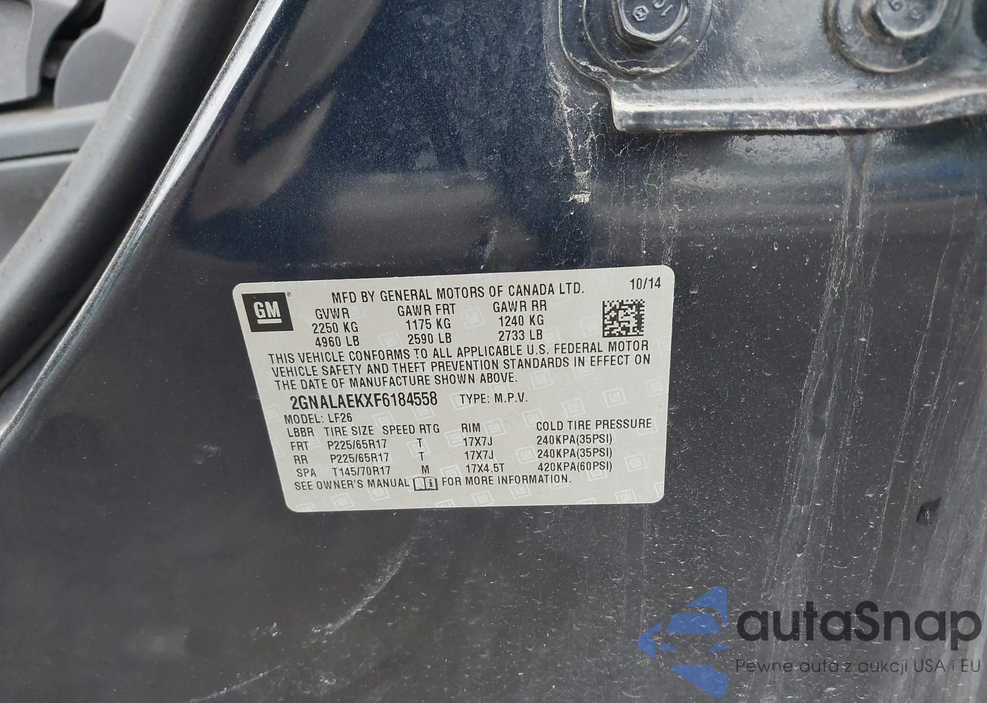 LOT: 43119829 VIN: 2GNALAEKXF6184558