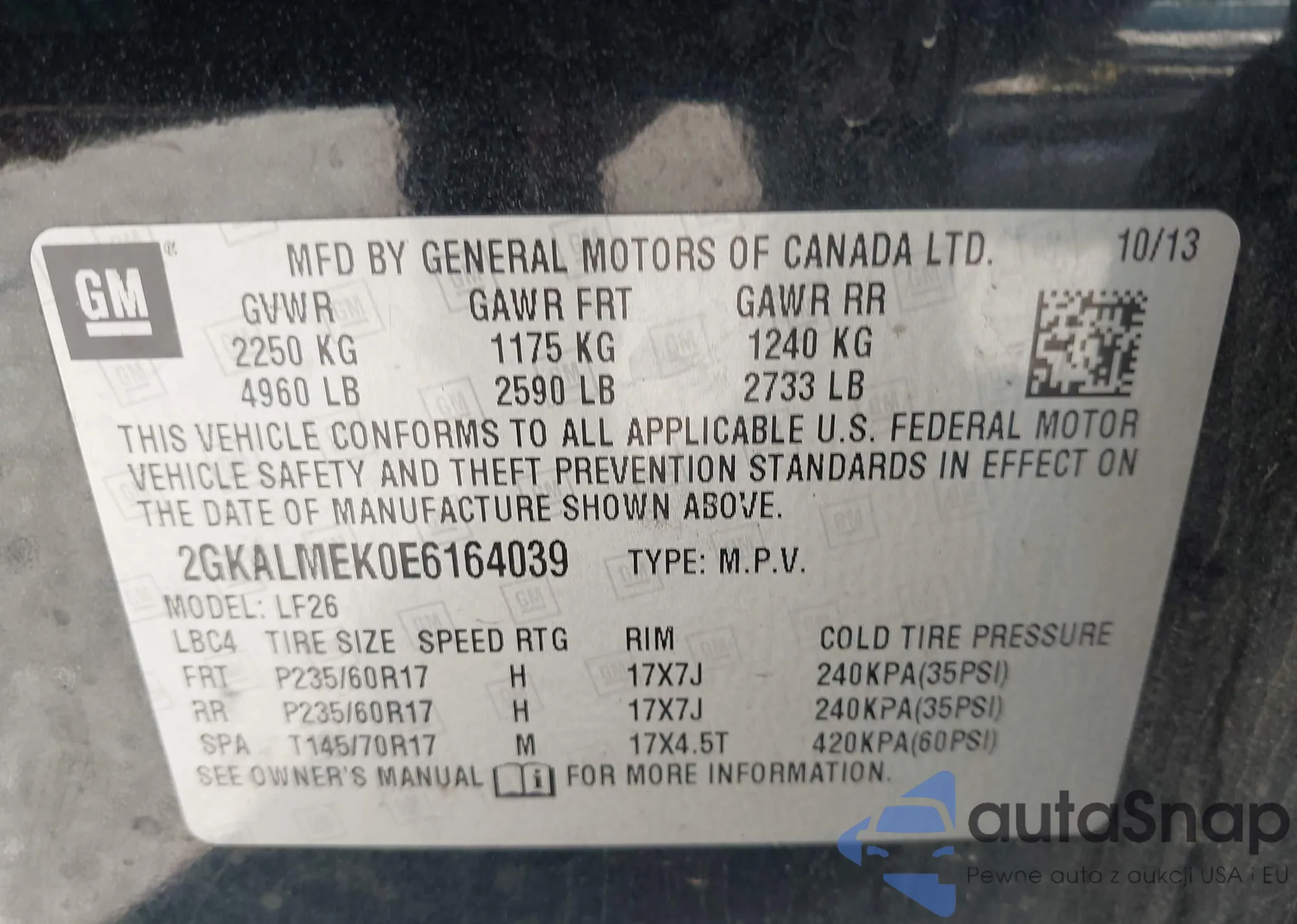 • VIN 3KPFT4DE1SE091773