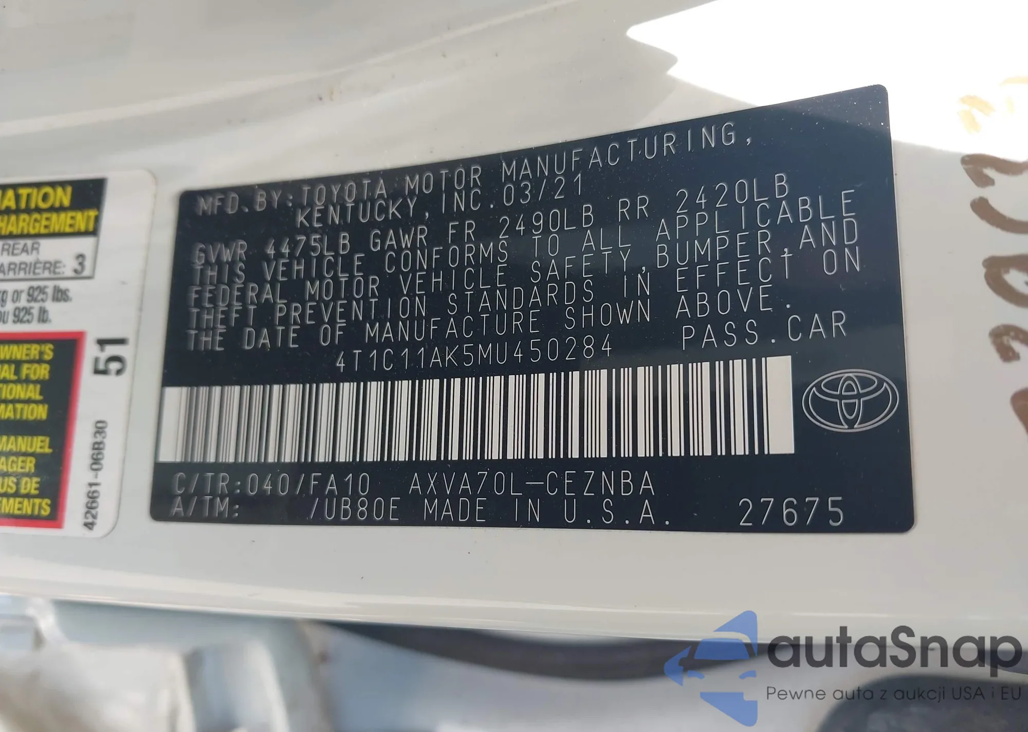 LOT: 43130234 VIN: 4T1BE30K42U619916