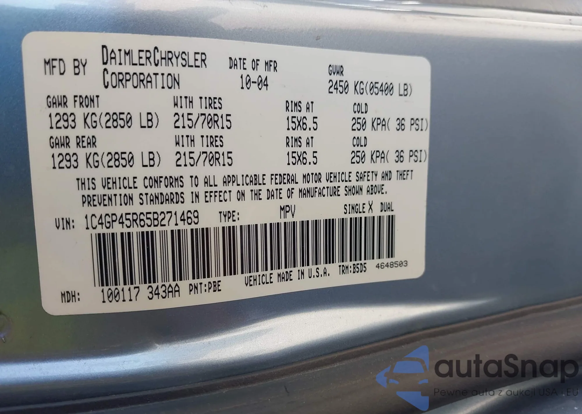 • VIN 1C4GP45R65B271469