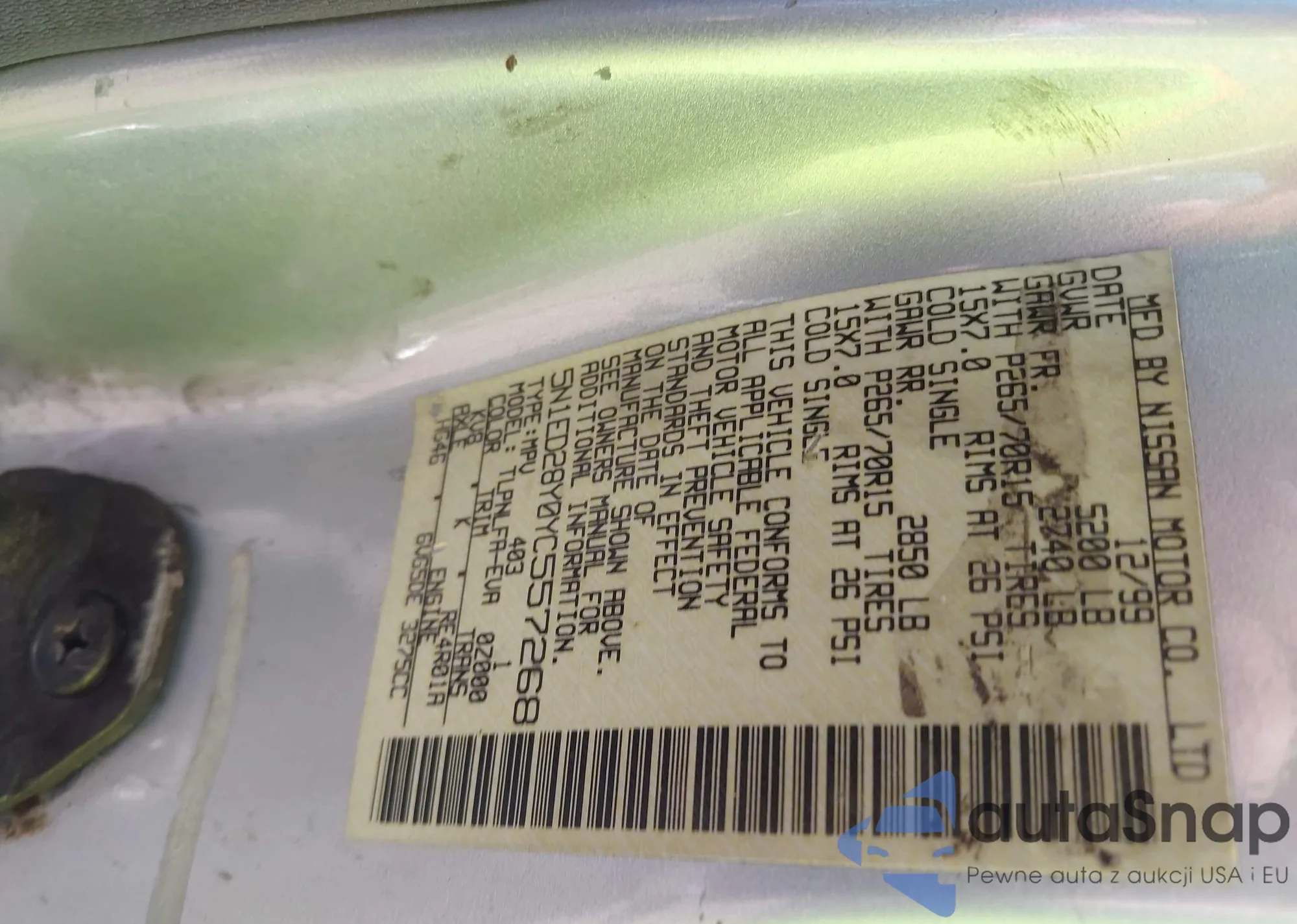 • VIN 5N1ED28Y0YC557268