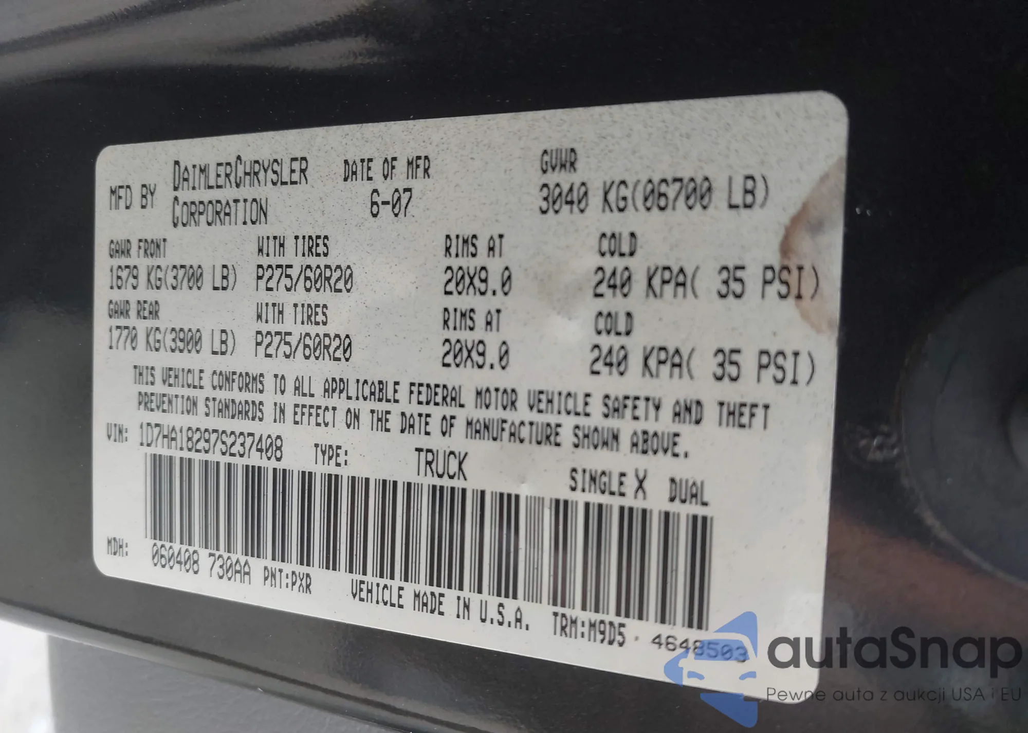 • VIN 1C4GJXAN3MW788452