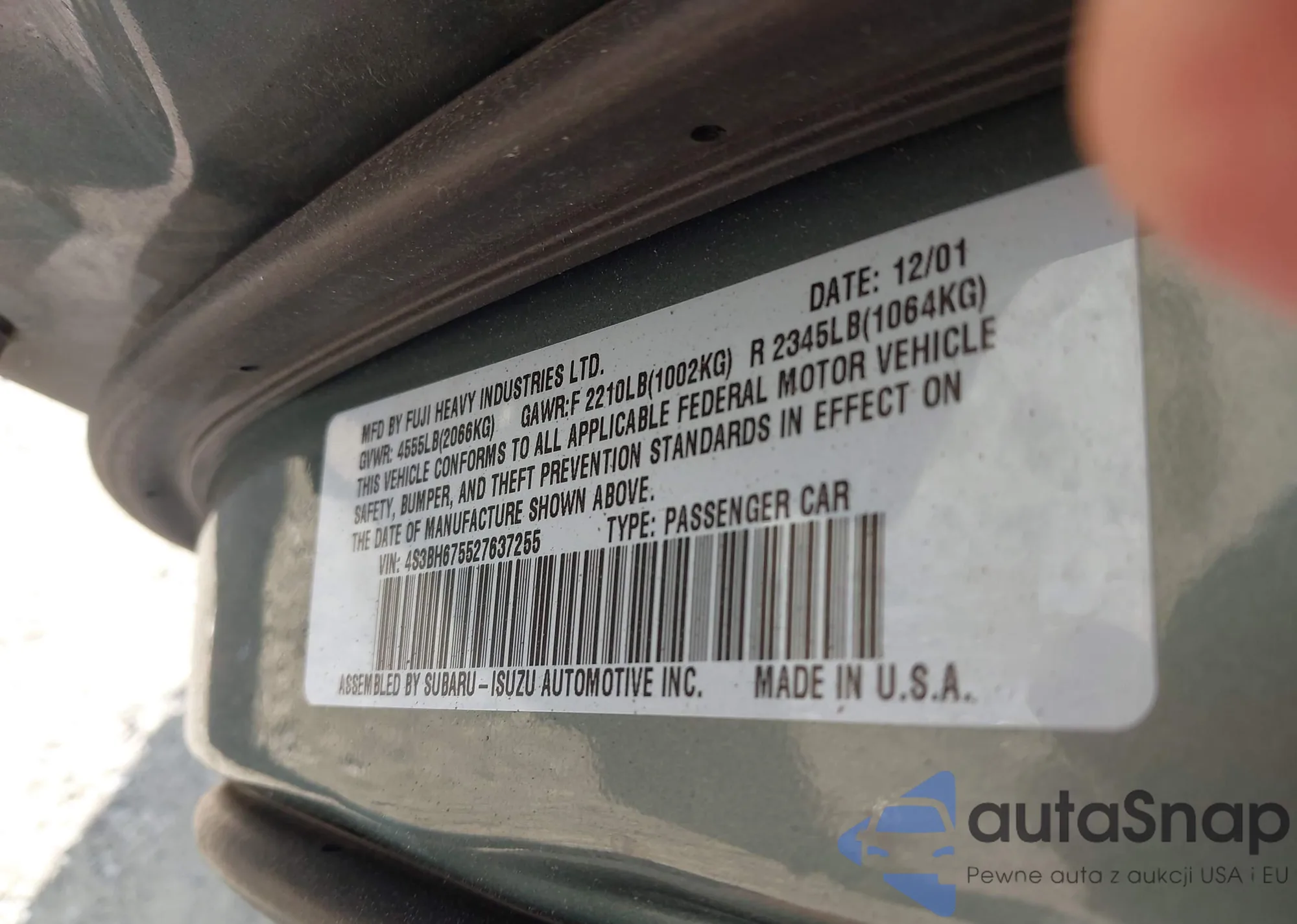LOT: 43242734 VIN: 4S3BH675527637255