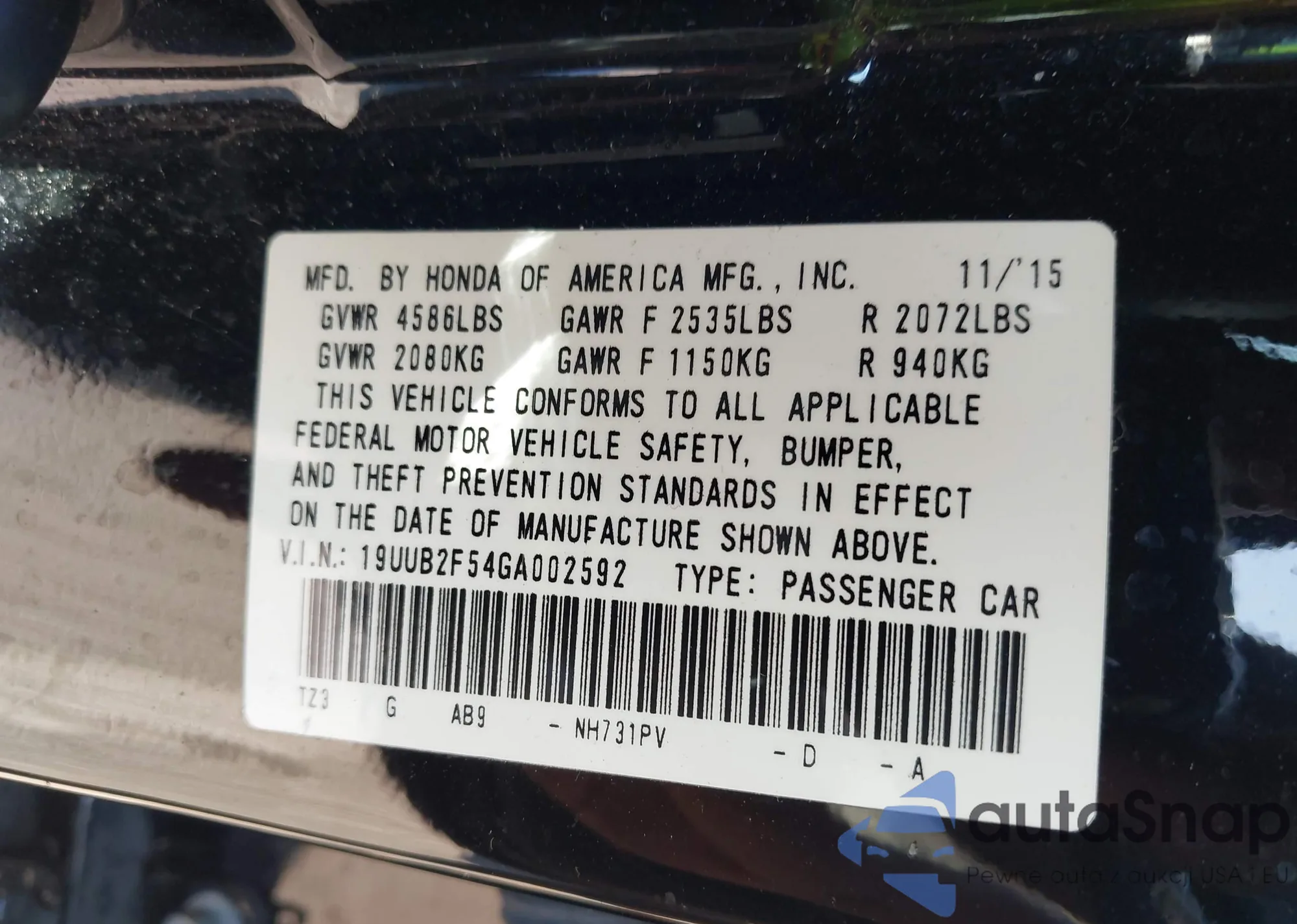 • VIN 19UUB2F54GA002592