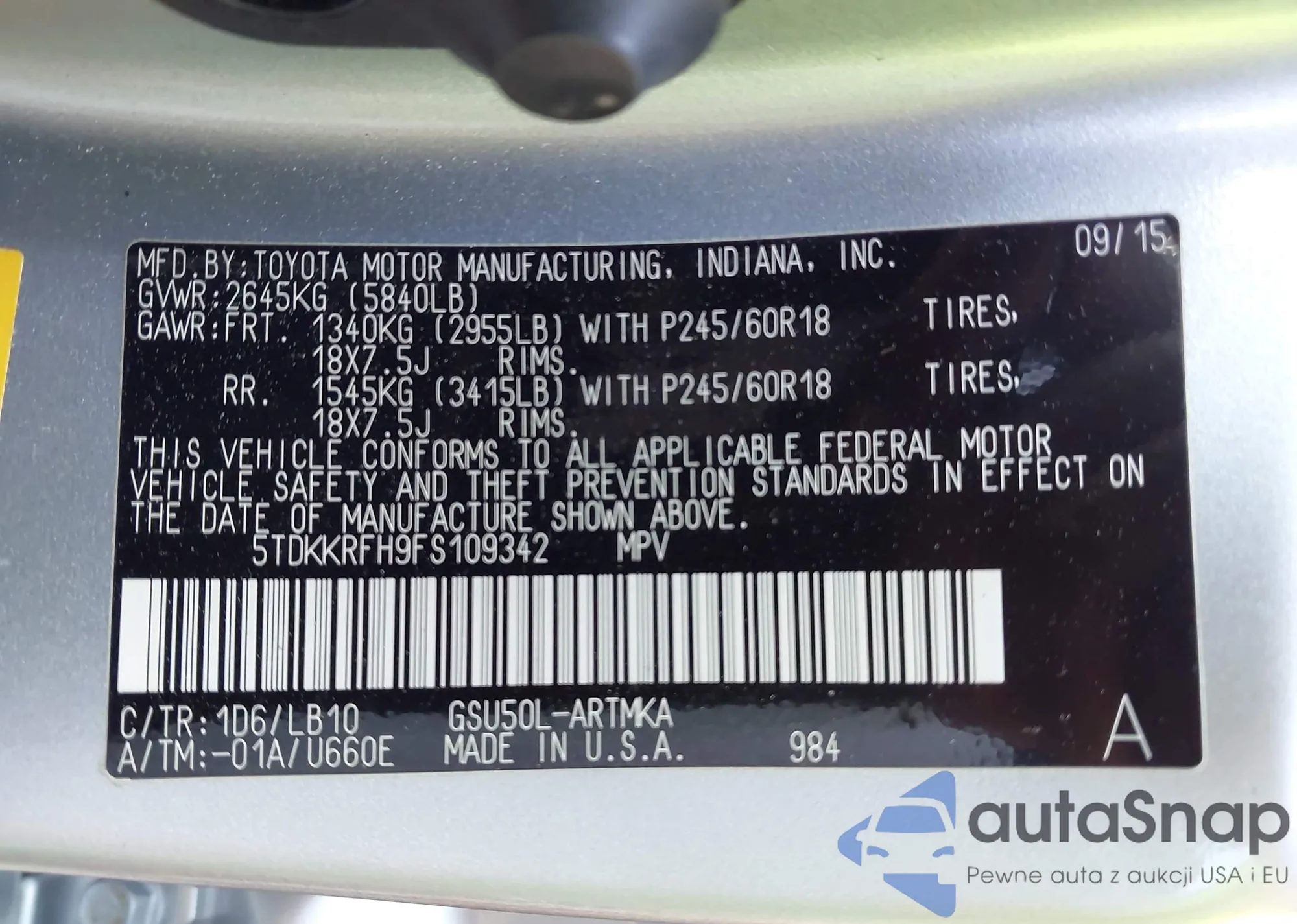 LOT: 43209133 VIN: 5TDKKRFH9FS109342