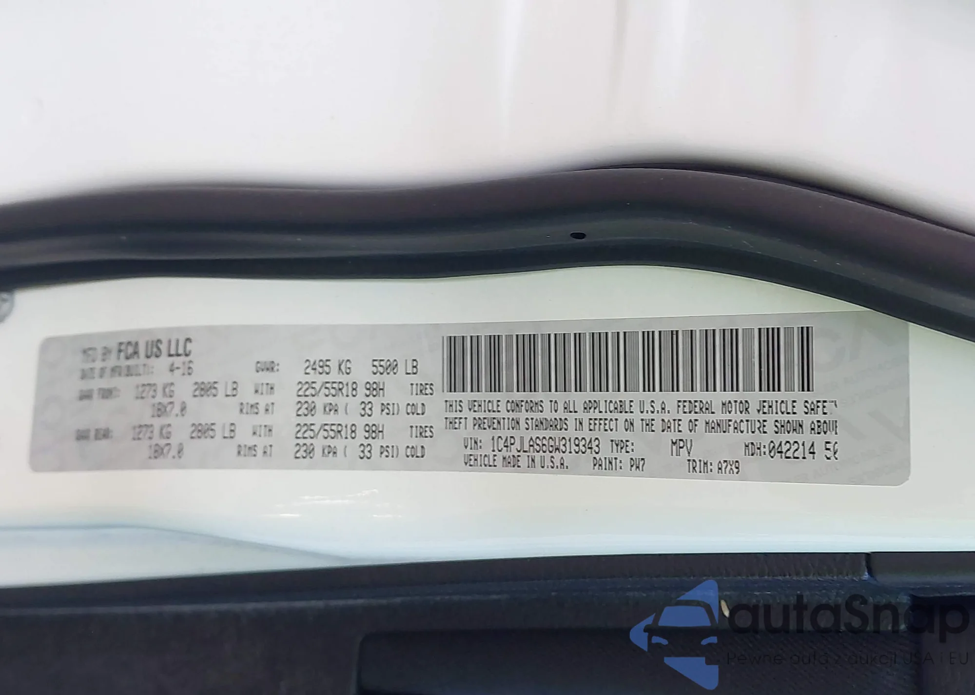 • VIN 1C4PJLAS6GW319343