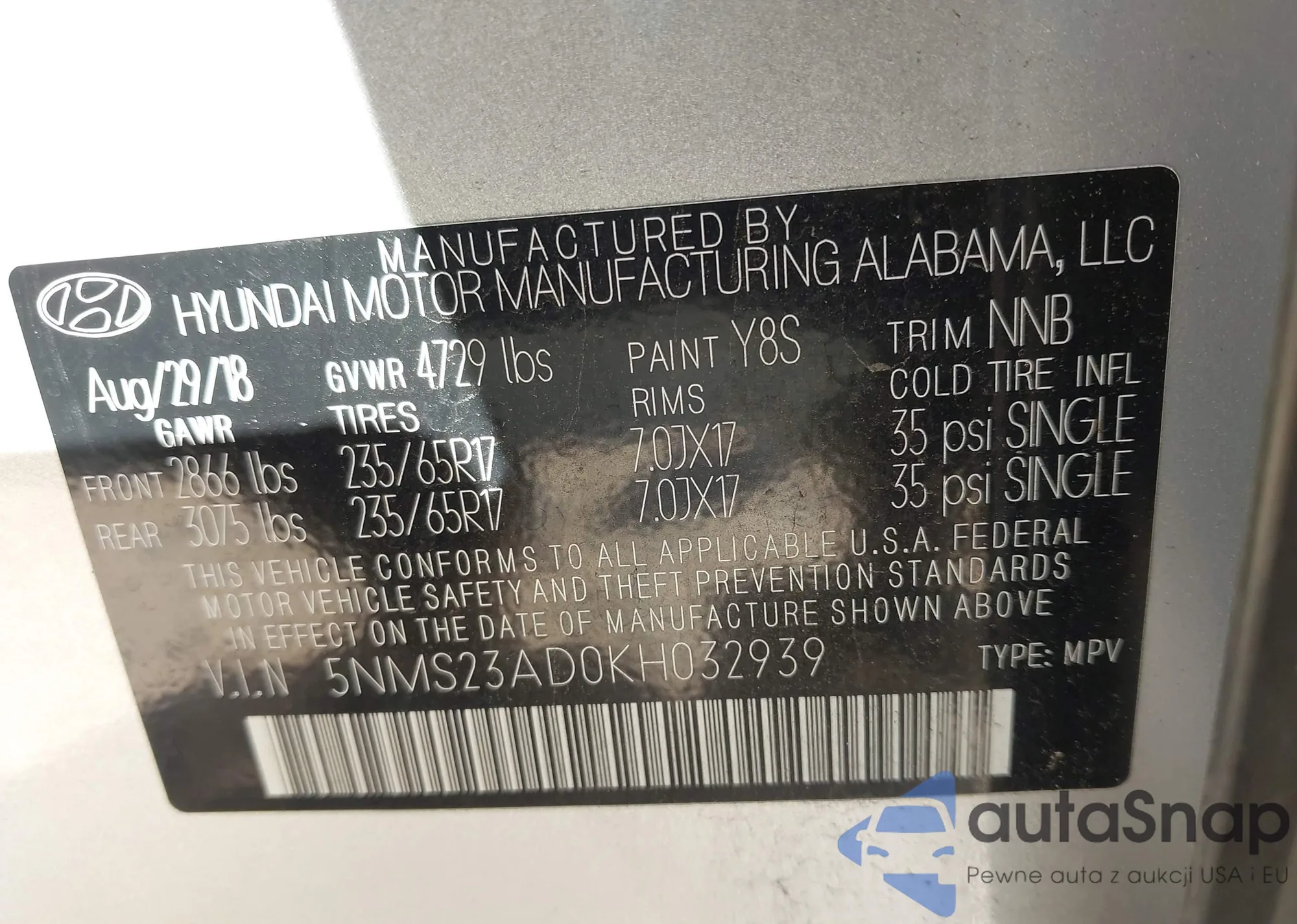 LOT: 43260397 VIN: 5TDYRKEC8SS274893