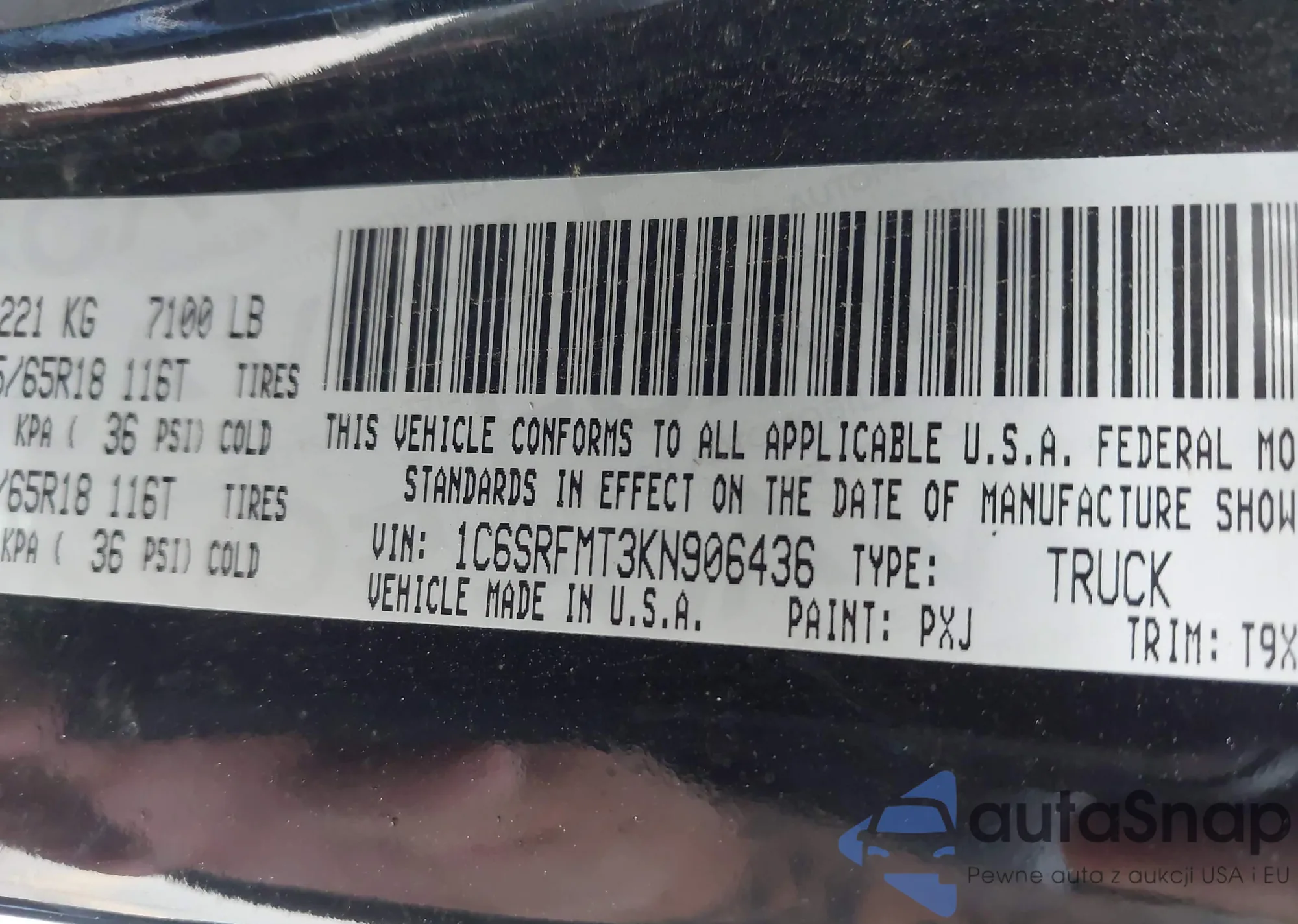 • VIN 1C6SRFMT3KN906436