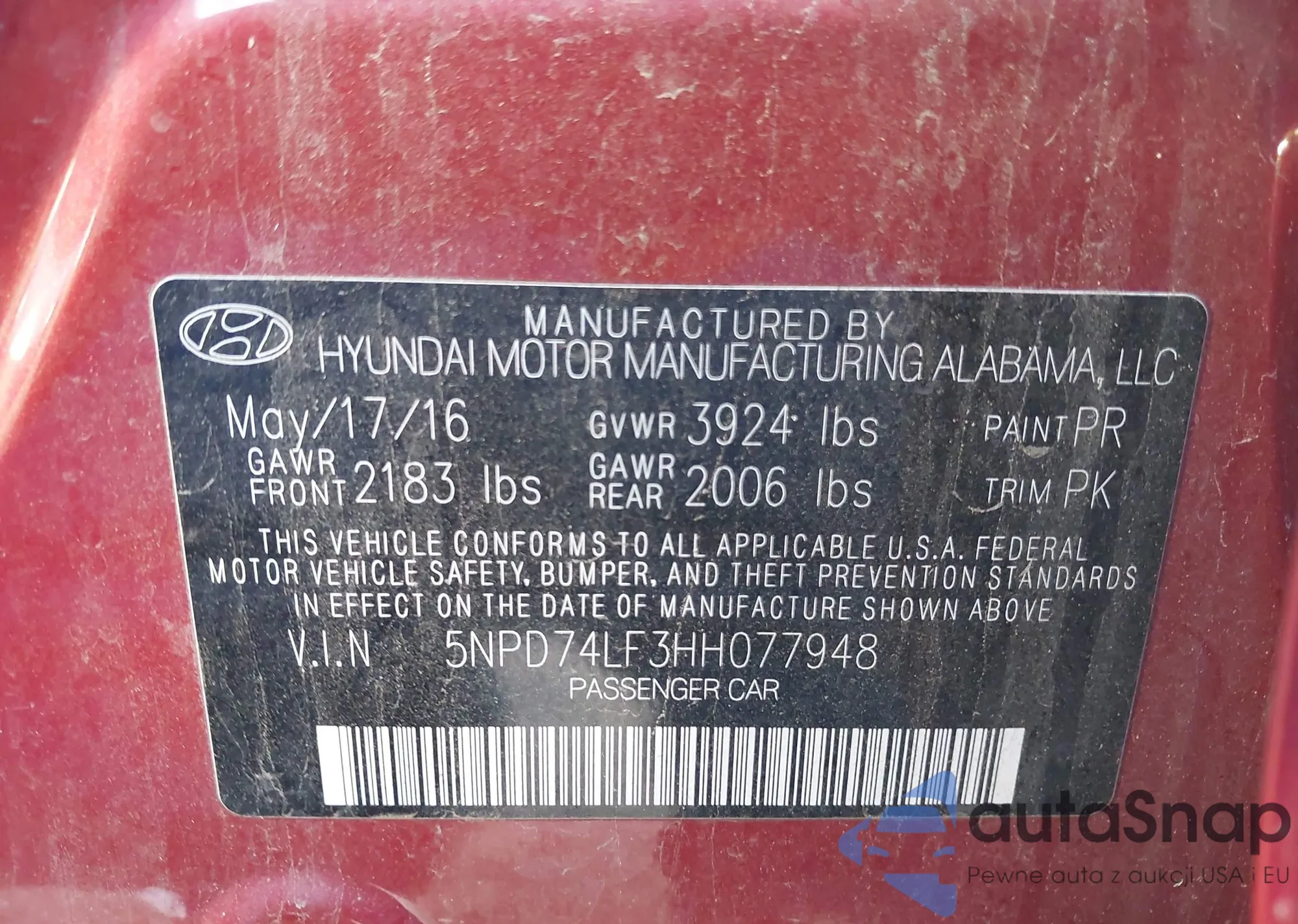 • VIN 5NPD74LF3HH077948