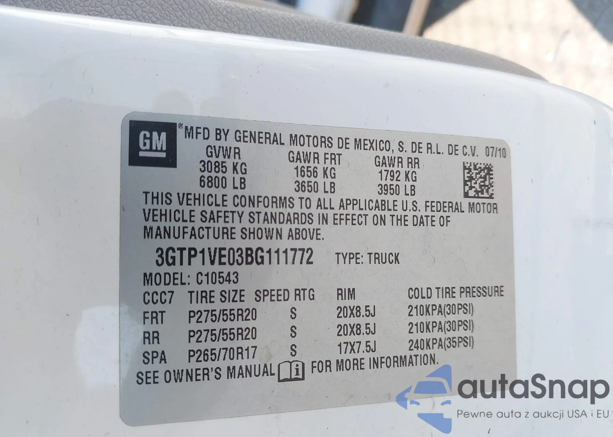 • VIN 3GCUDFED3NG620039
