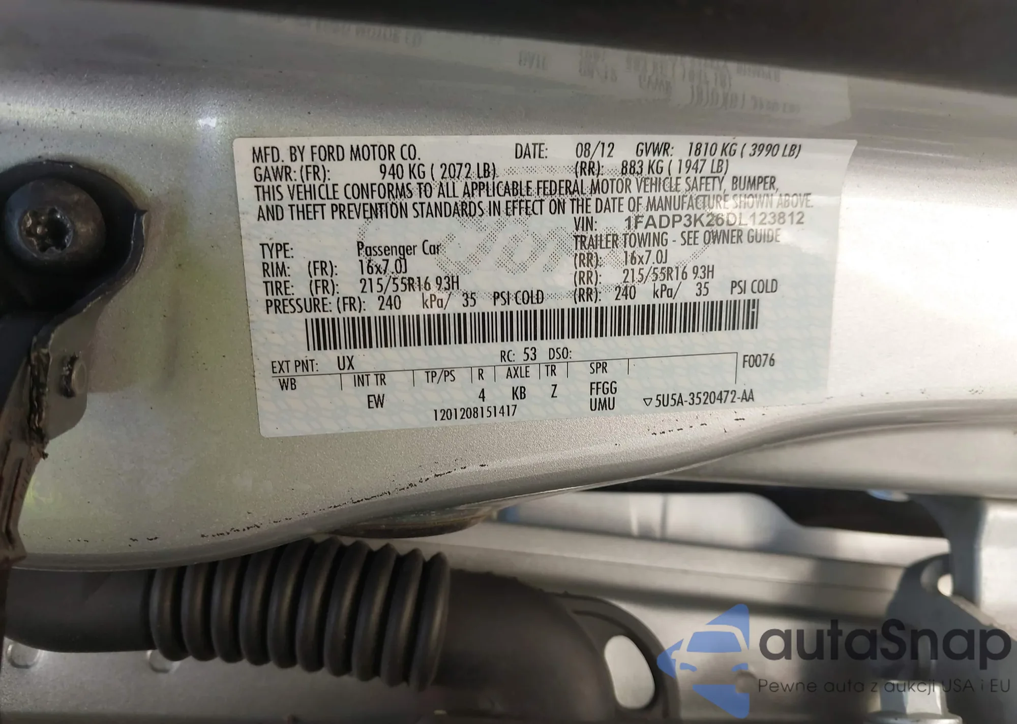 • VIN 1FADP3K26DL123812
