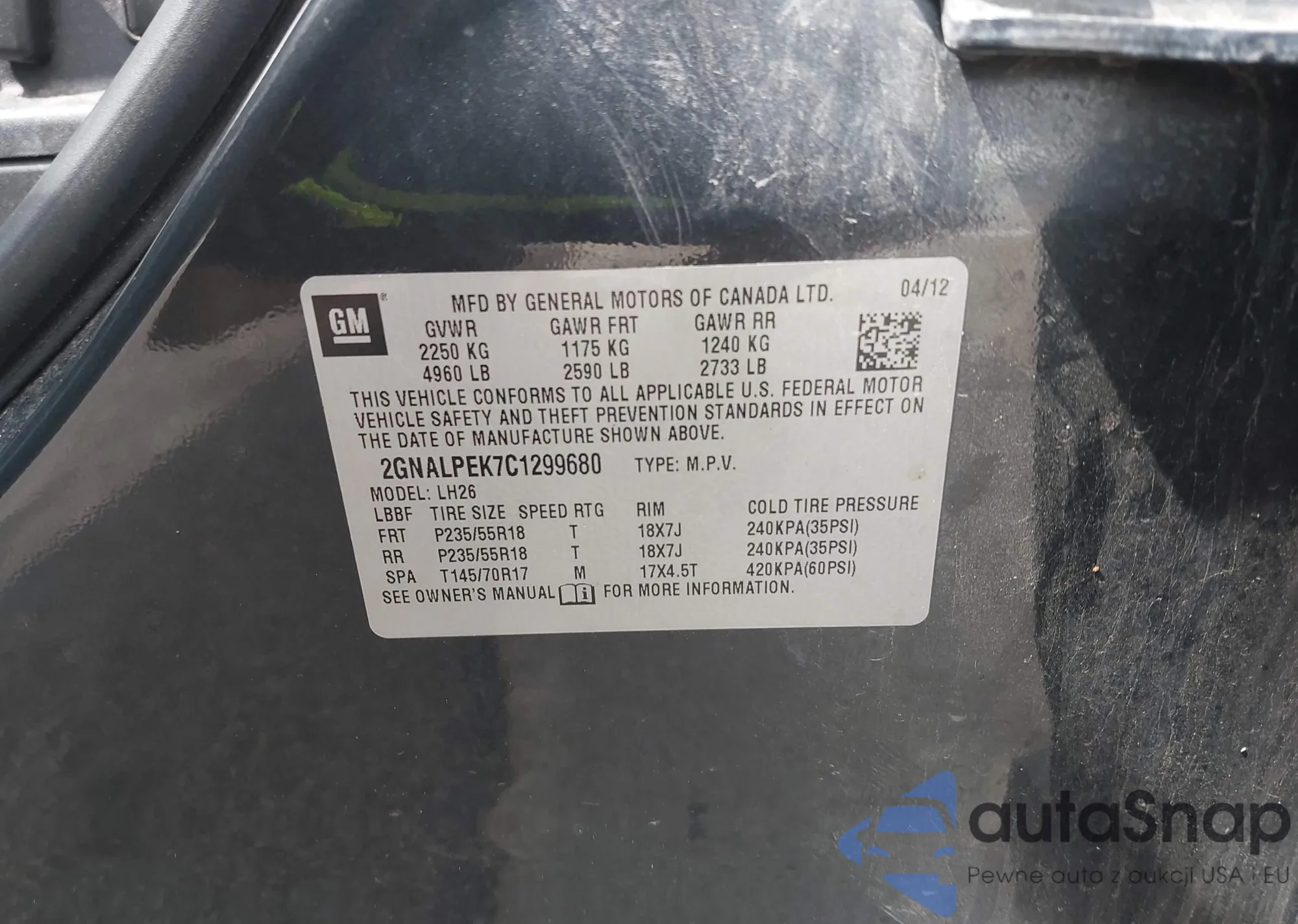 • VIN 2GNALPEK7C1299680