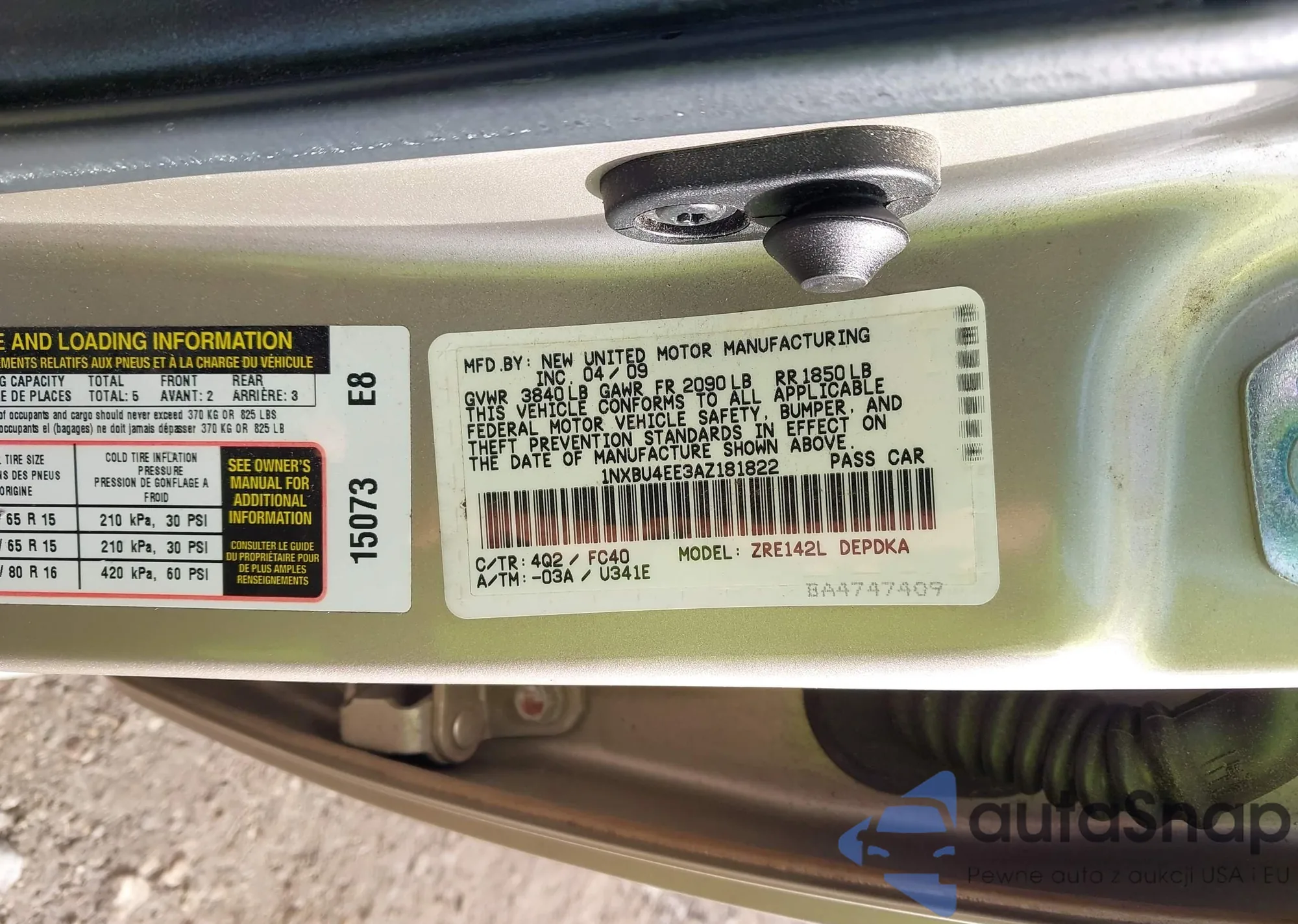 LOT: 43458586 VIN: 1NXBU4EE3AZ181822