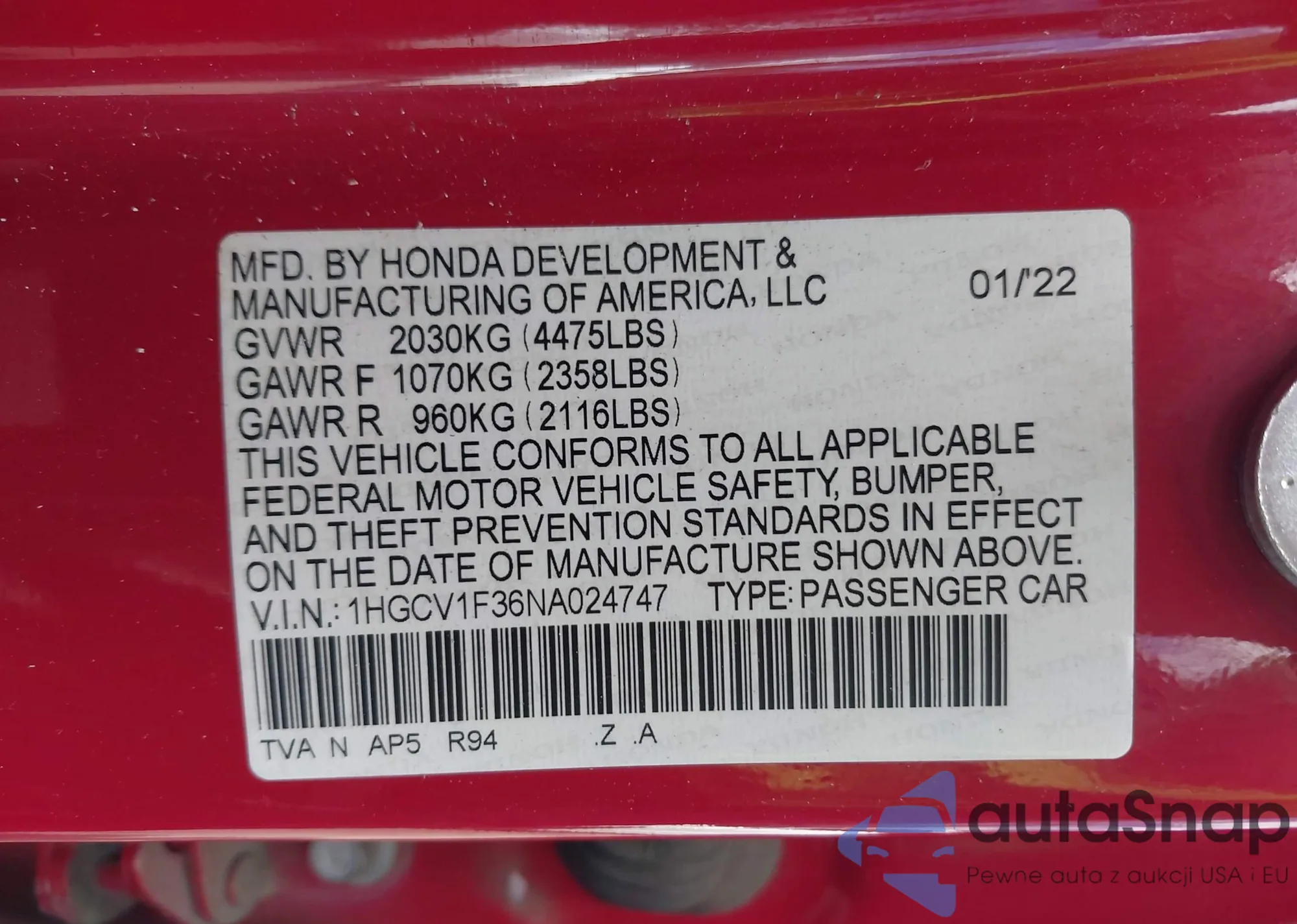 • VIN 1HGCV1F36NA024747