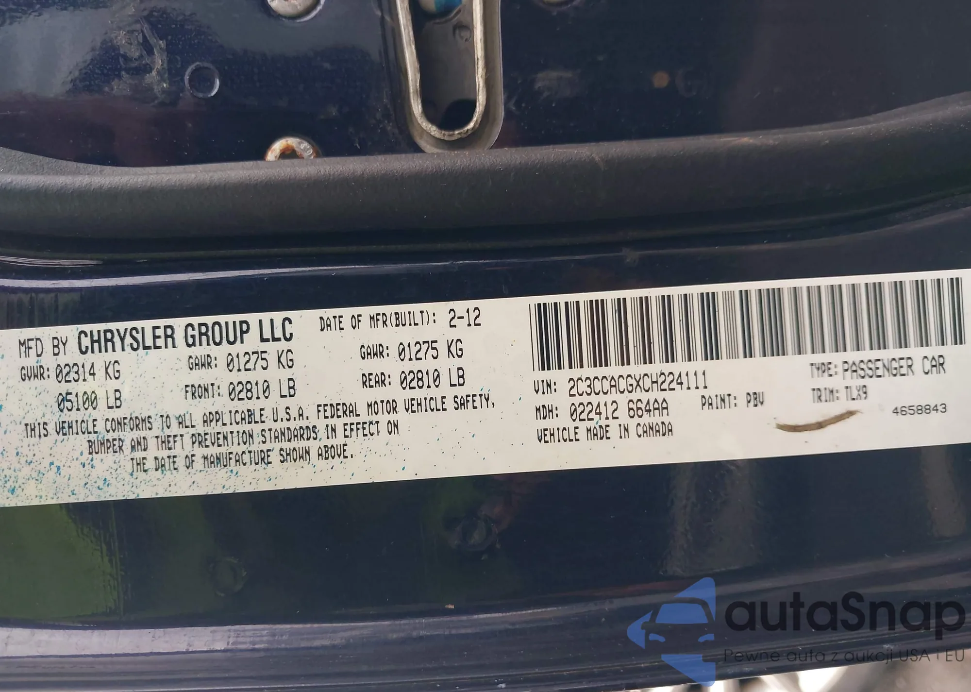 • VIN 2C3CCACGXCH224111
