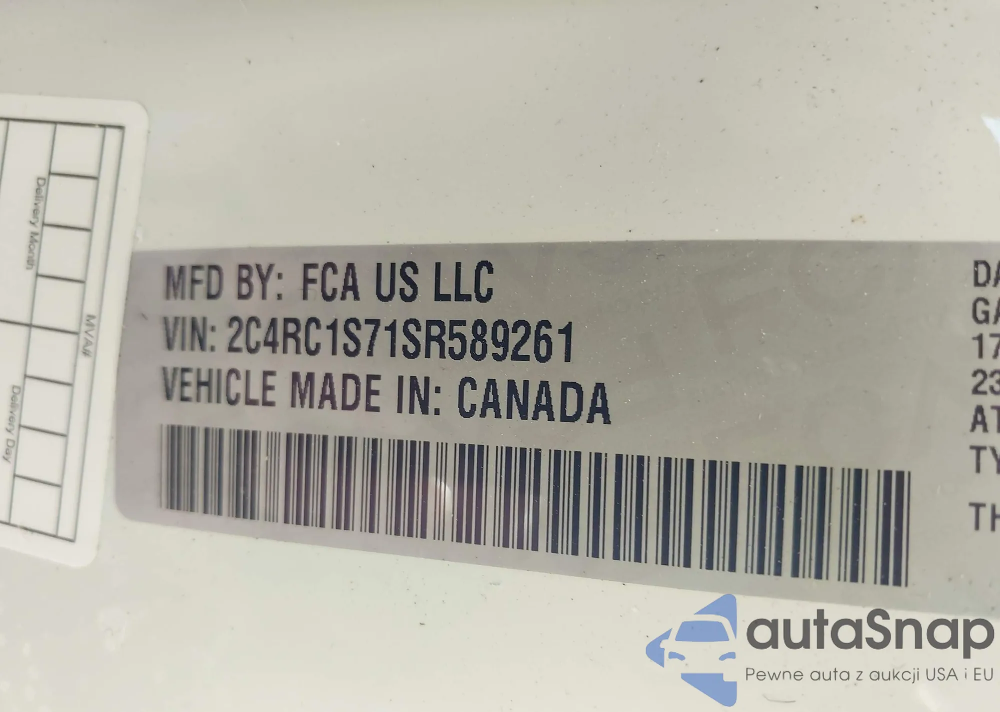 • VIN 2C4RC1S71SR589261
