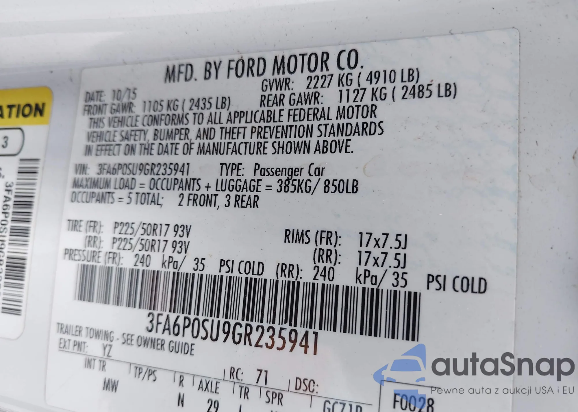 • VIN 3FA6P0SU9GR235941