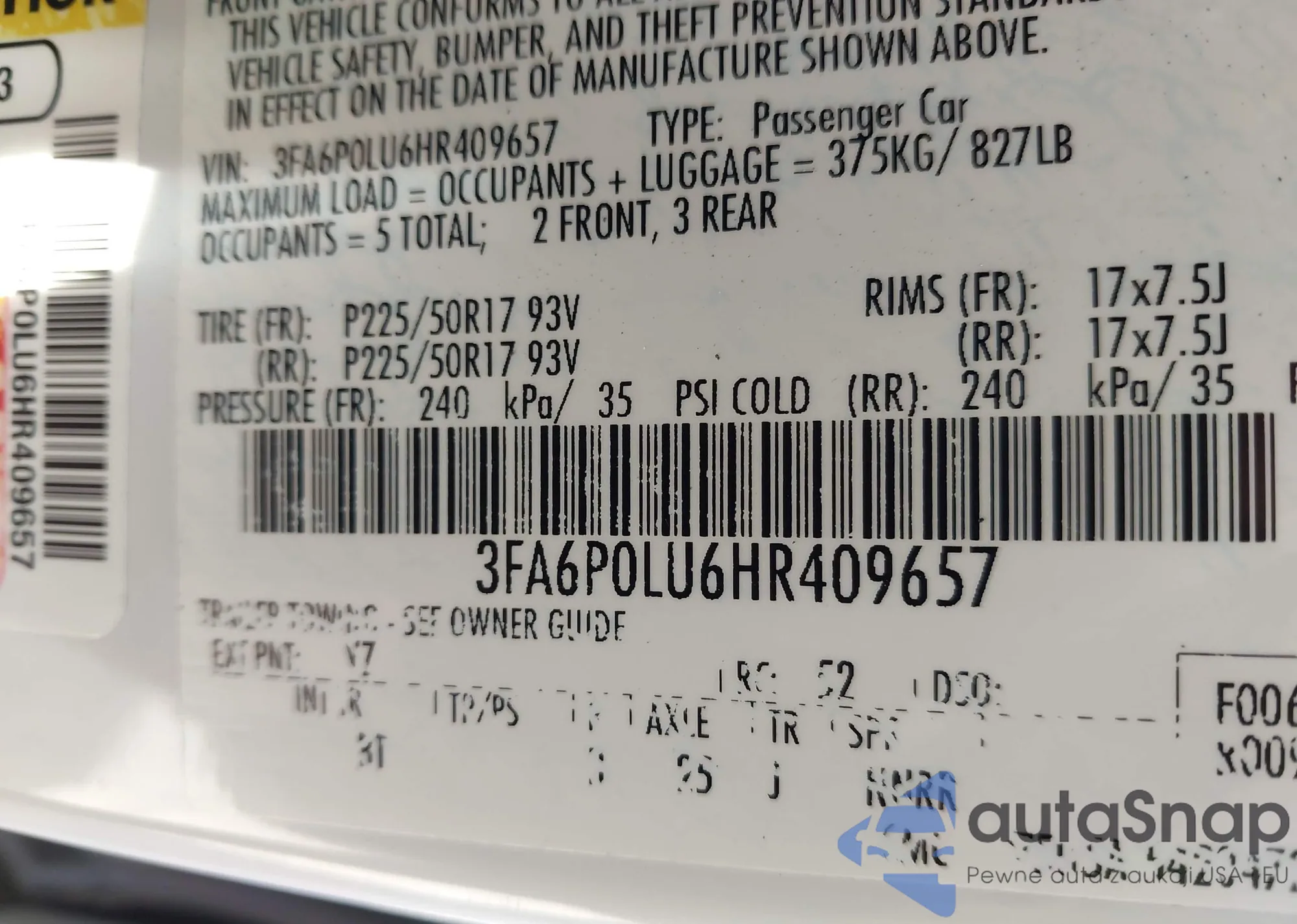 • VIN 3FA6P0LU6HR409657
