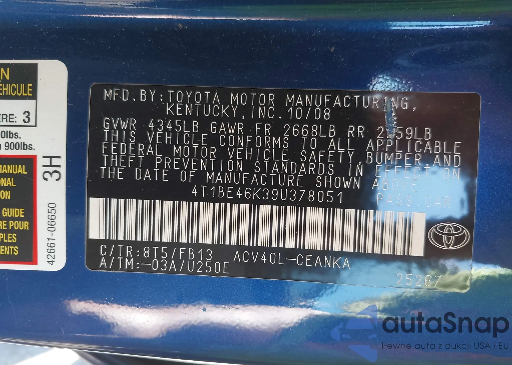 • VIN 4T1BE46K39U378051