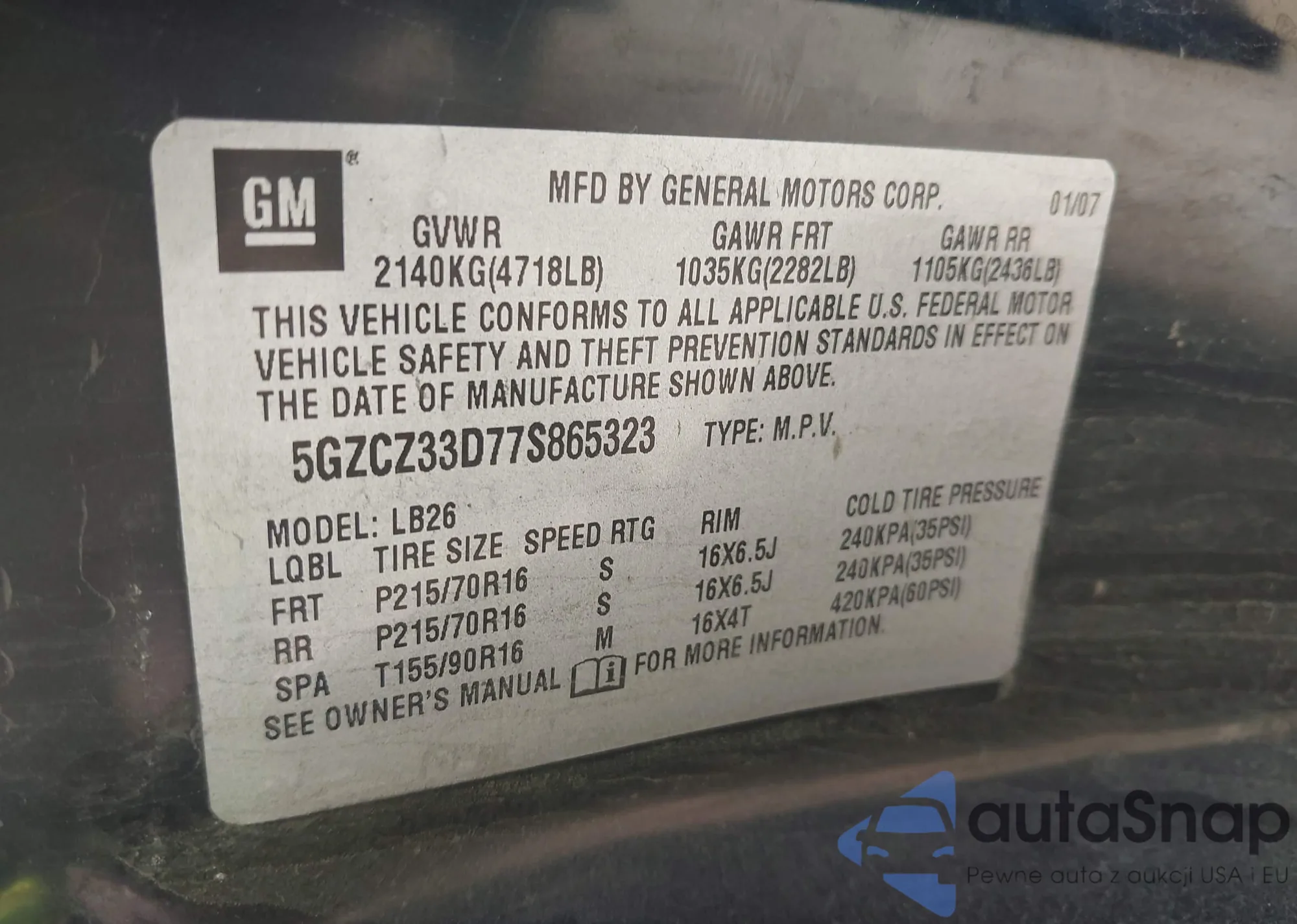 LOT: 43331925 VIN: 1FTFX1EF5EFB38727
