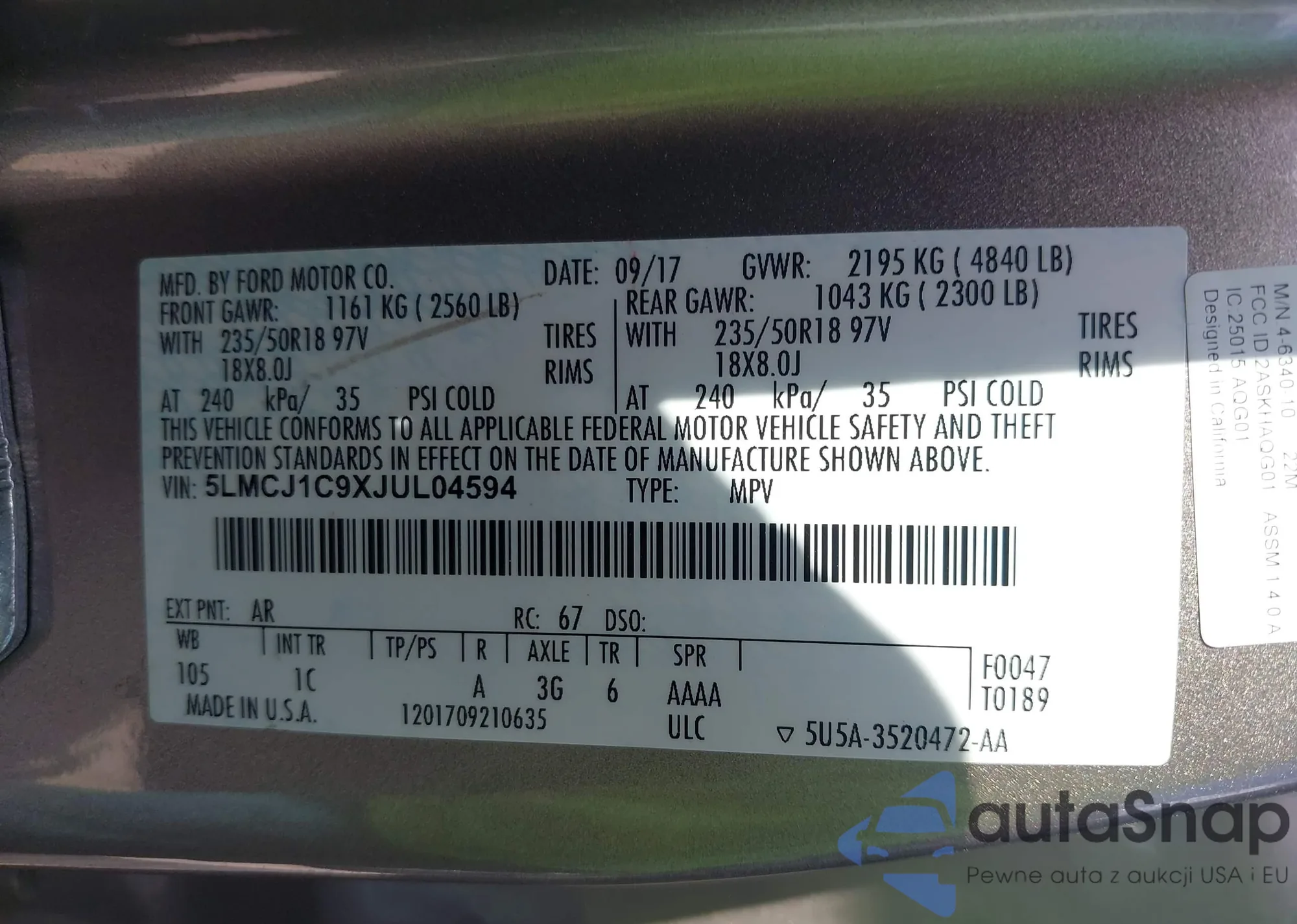 • VIN 5LMCJ1C9XJUL04594