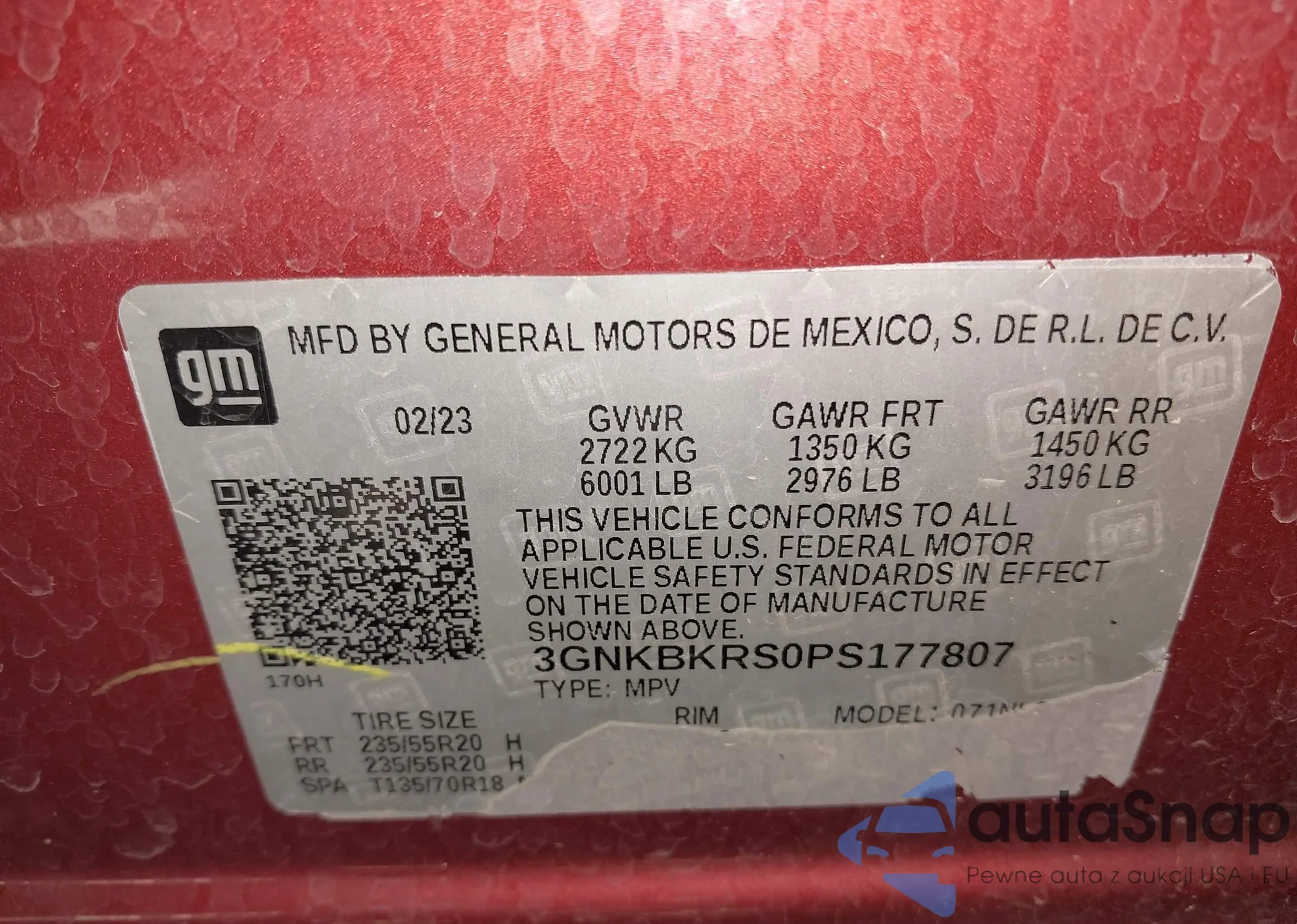LOT: 42954666 VIN: 3GNKBKRS0PS177807