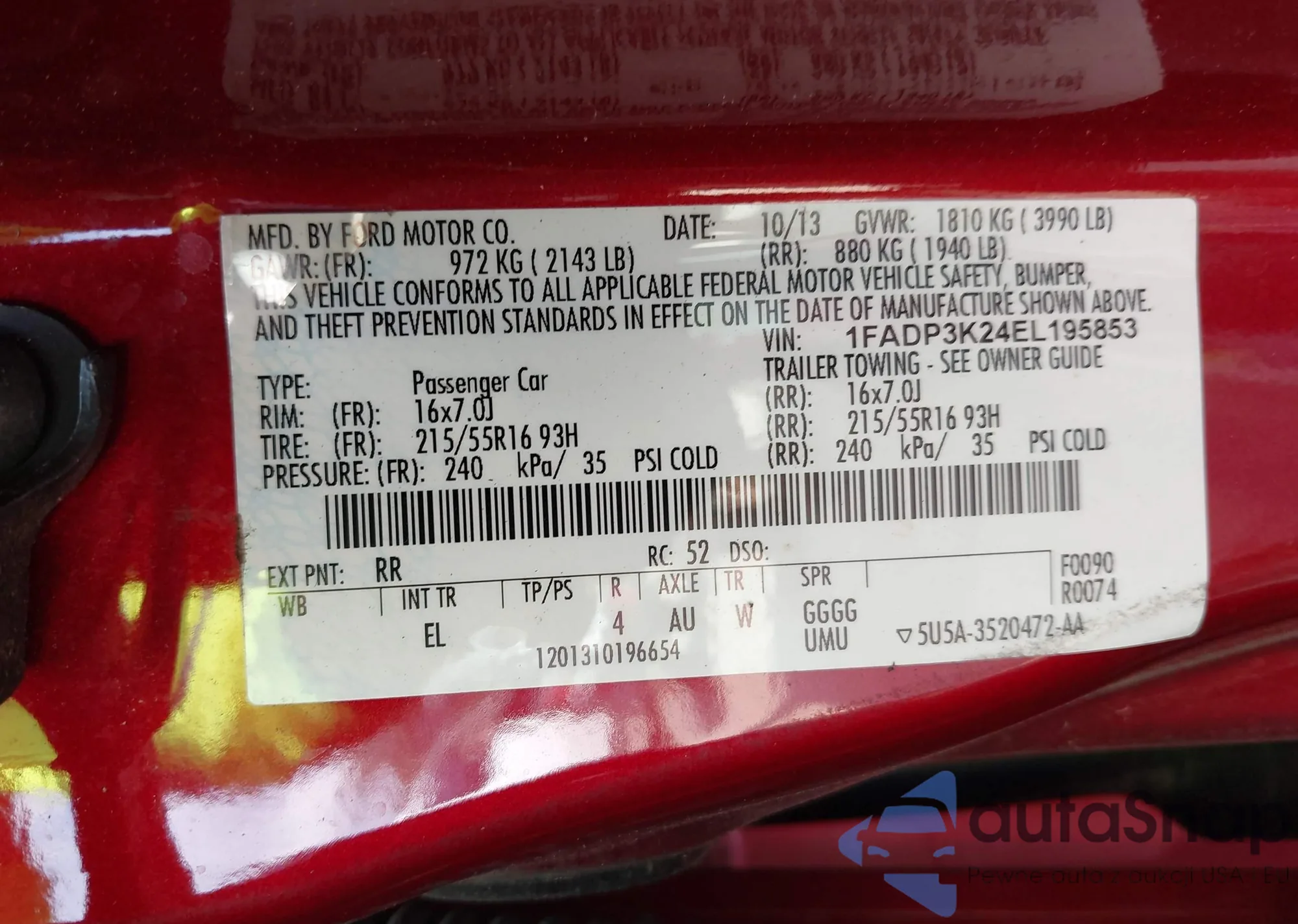 • VIN 1FADP3K24EL195853