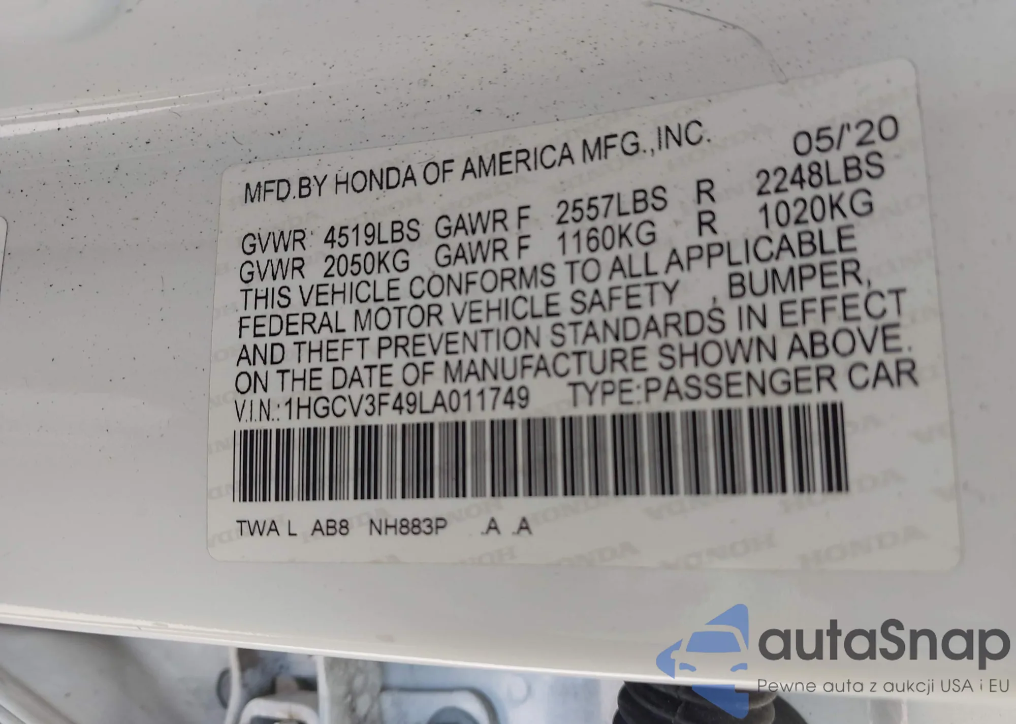 LOT: 43363848 VIN: 19XZE4F57ME003445