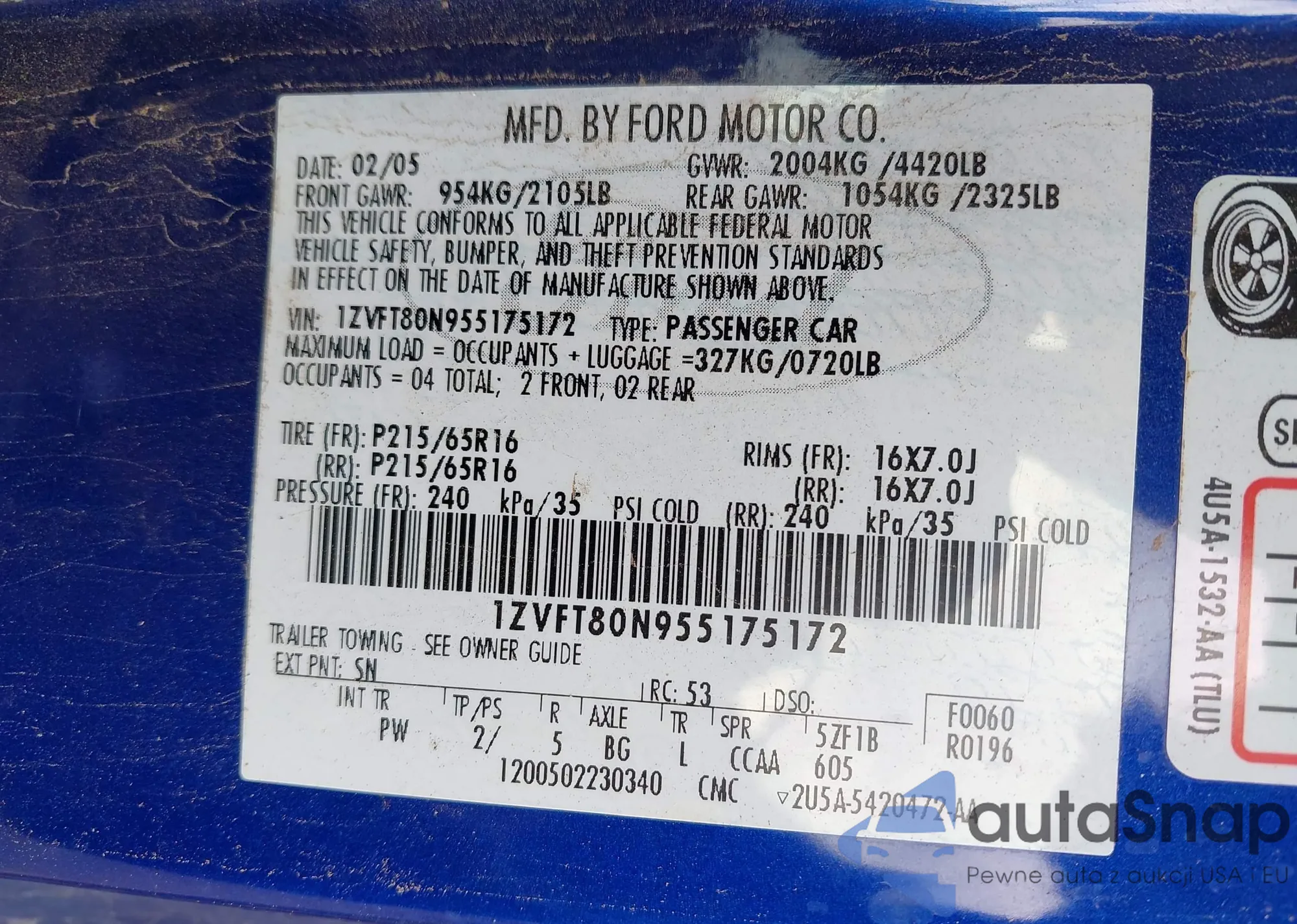 • VIN 1ZVFT80N955175172