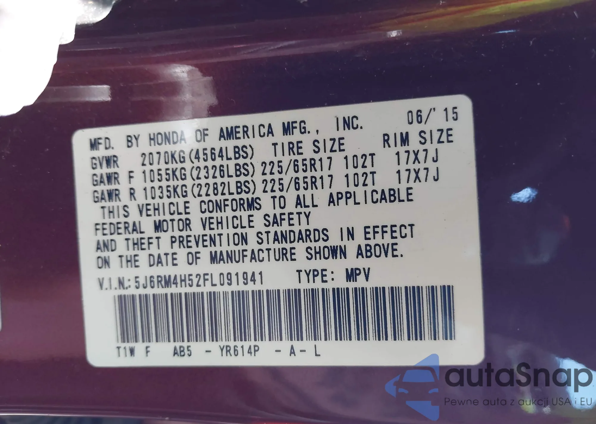 • VIN 19XZE4F57ME003445