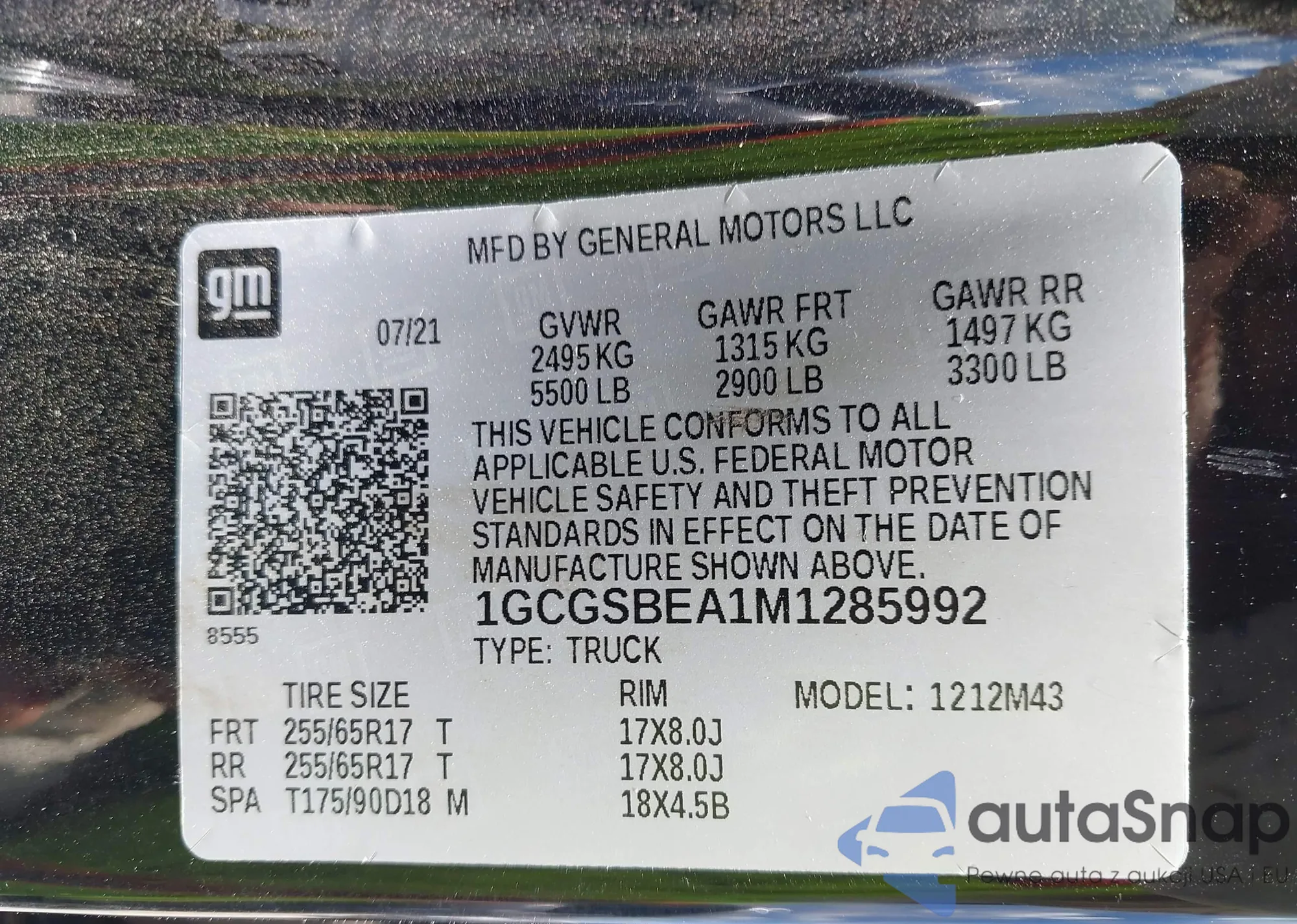 LOT: 42794069 VIN: 1GCGSBEA1M1285992