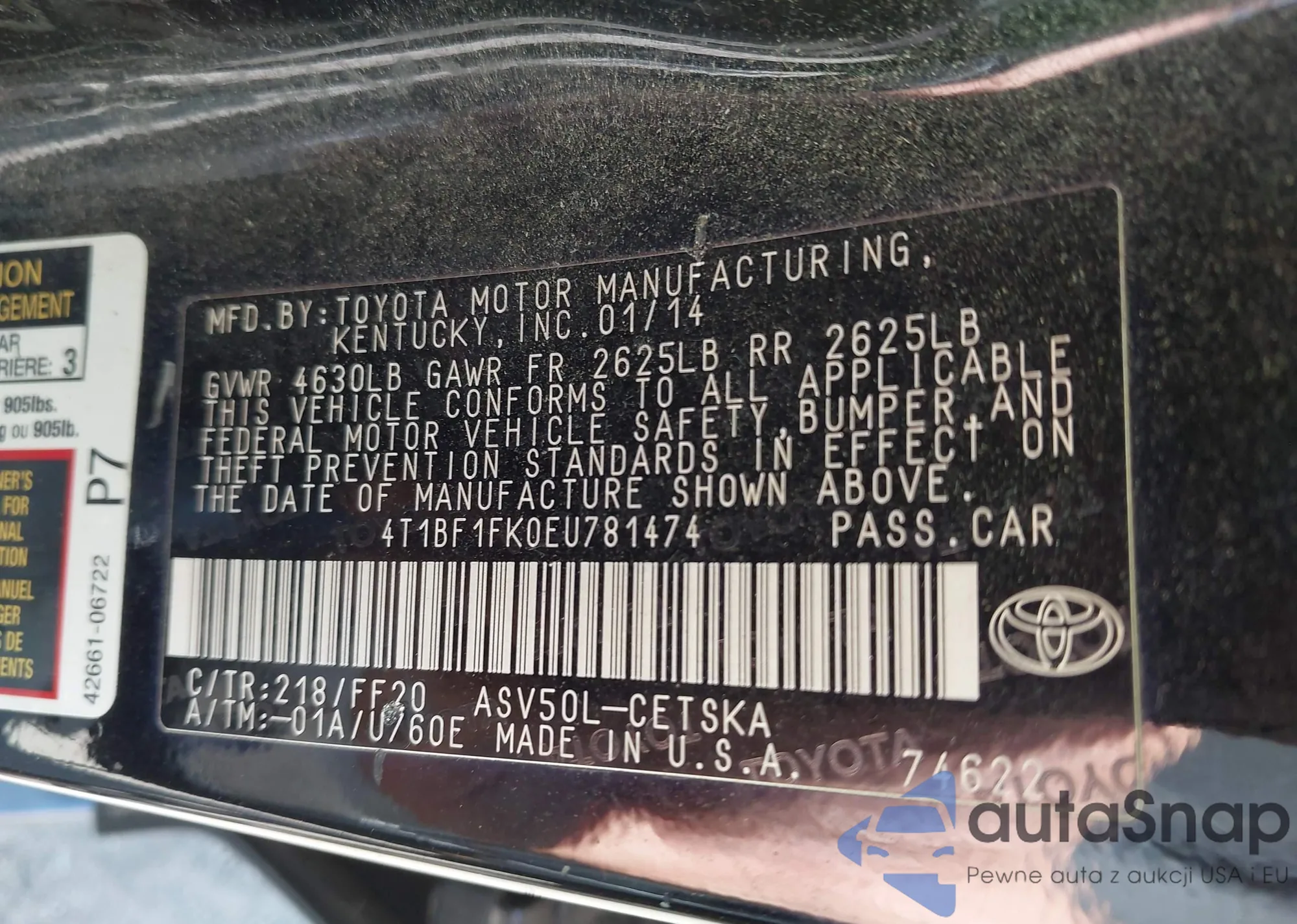 LOT: 42915766 VIN: 4T1G11AK6LU350307