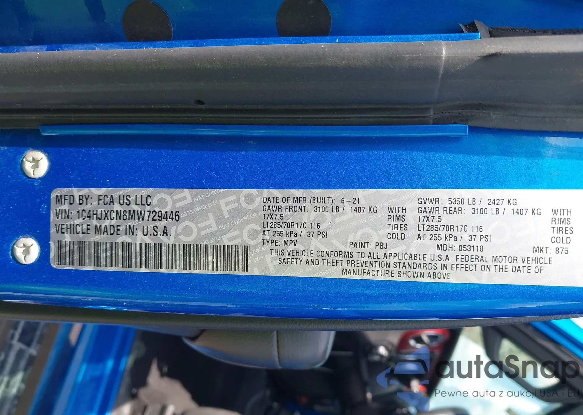 • VIN 1C4HJXCN8MW729446