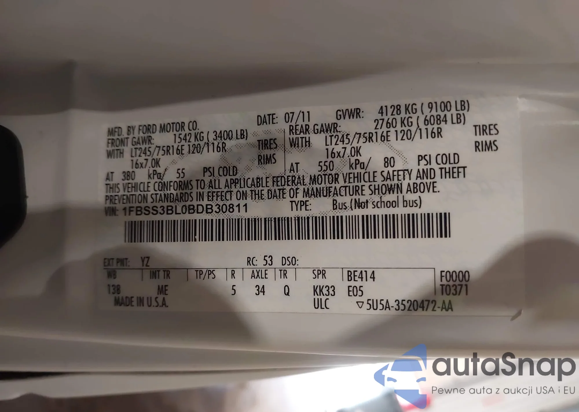 LOT: 42920279 VIN: 3KPFW4DE6SE146239