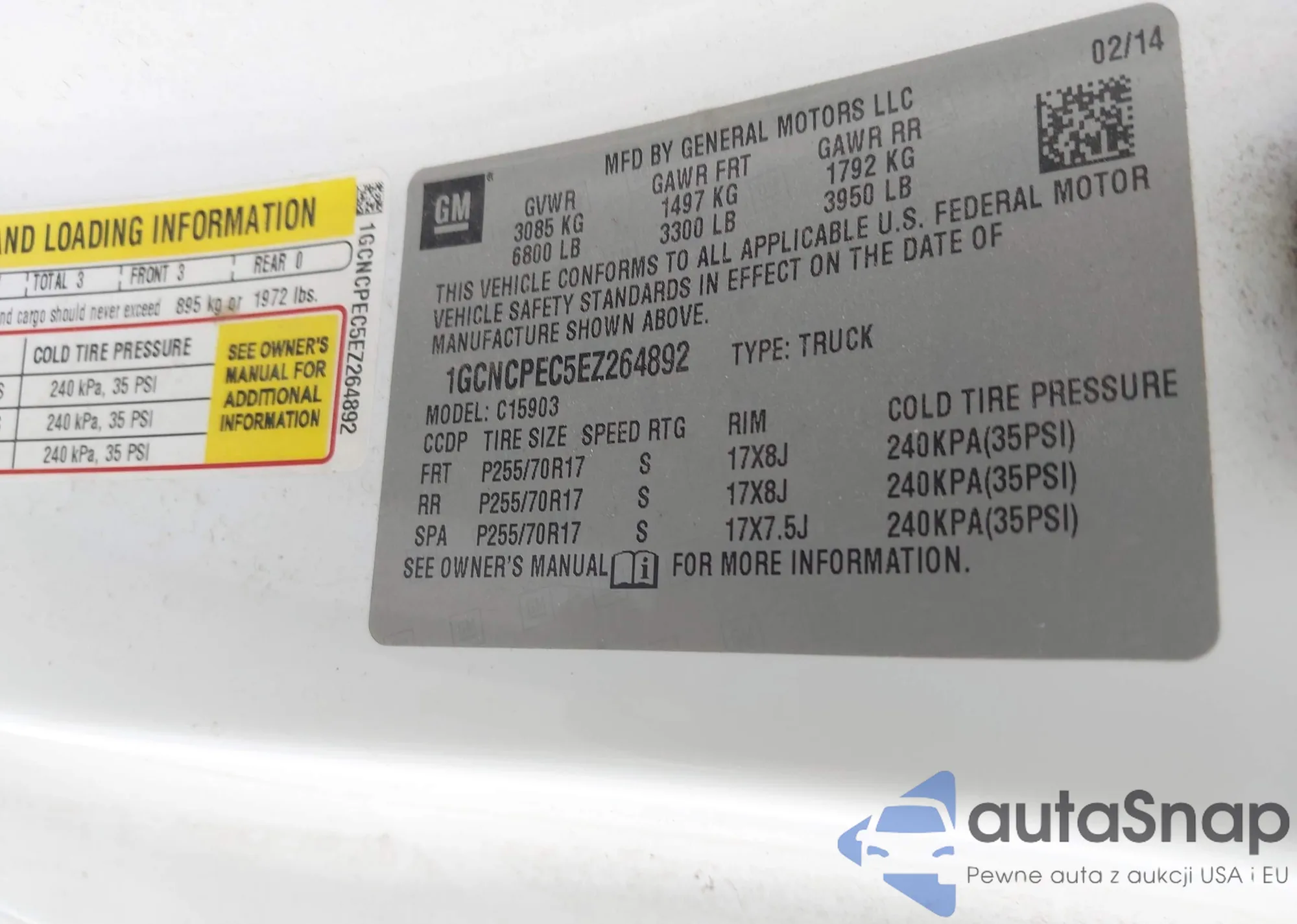 LOT: 42875285 VIN: 1GCNCPEC5EZ264892