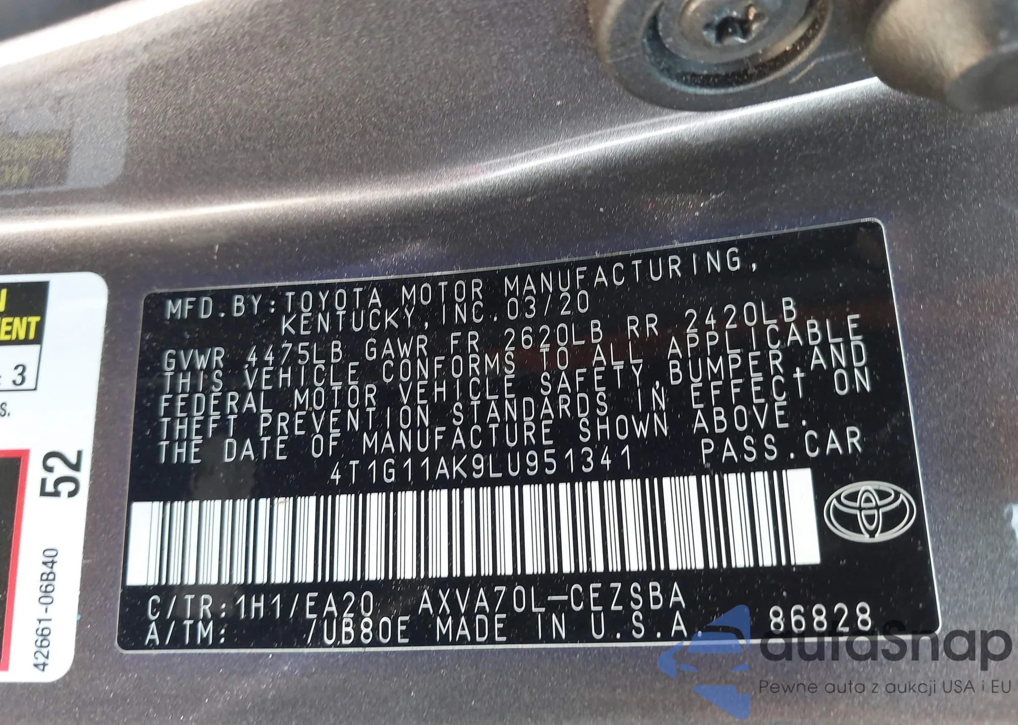 • VIN 4T1BF1FK8GU249442