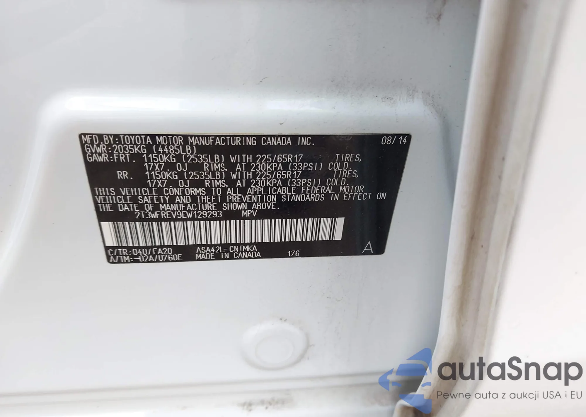 • VIN 5N1AR2MN9EC670160
