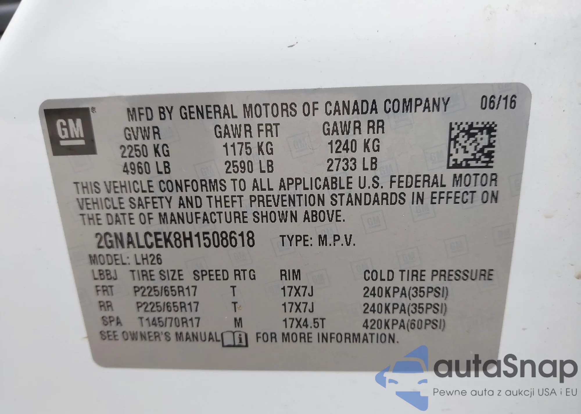 • VIN 2GNALCEK8H1508618