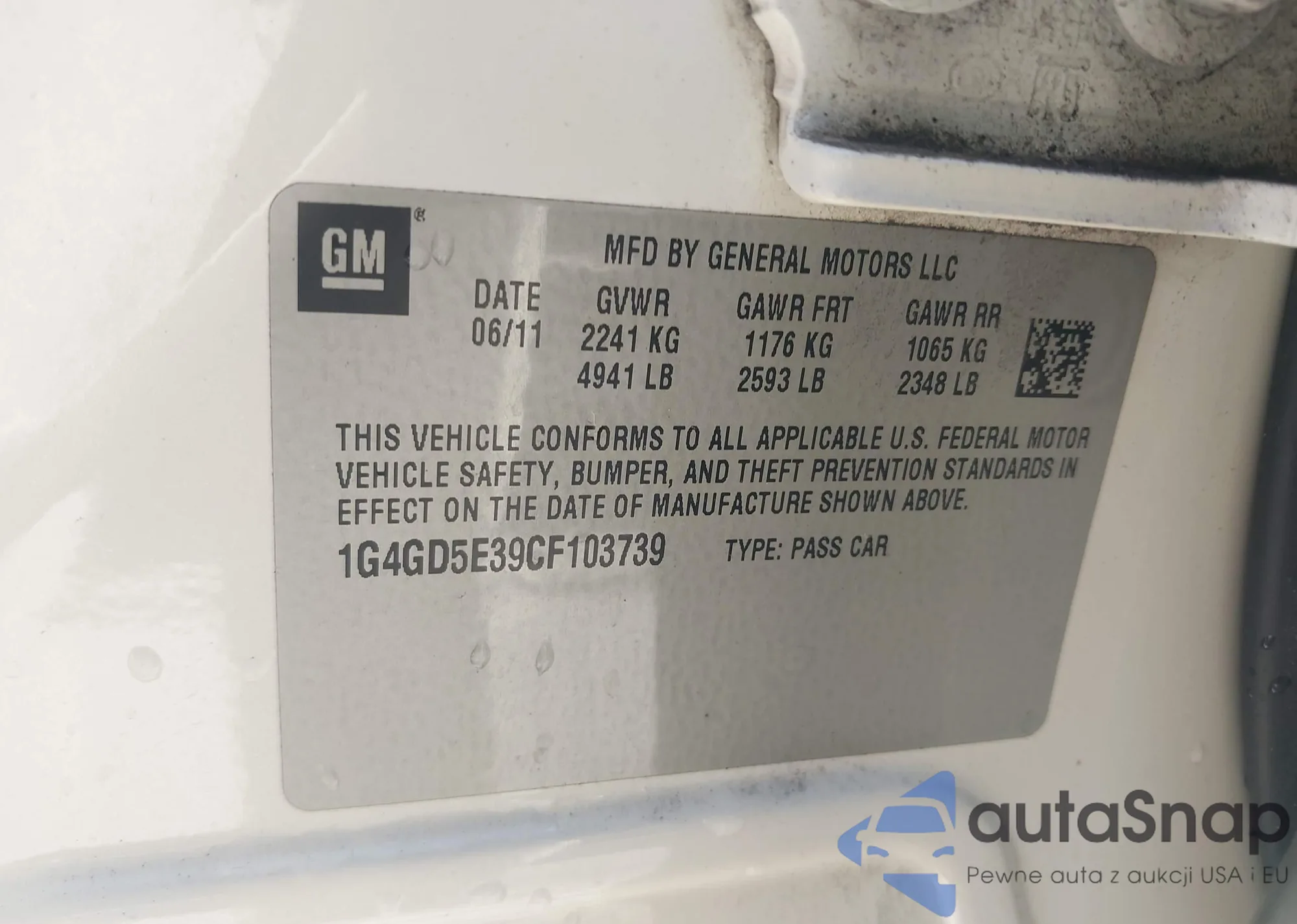 LOT: 43316805 VIN: 1G4GD5E39CF103739