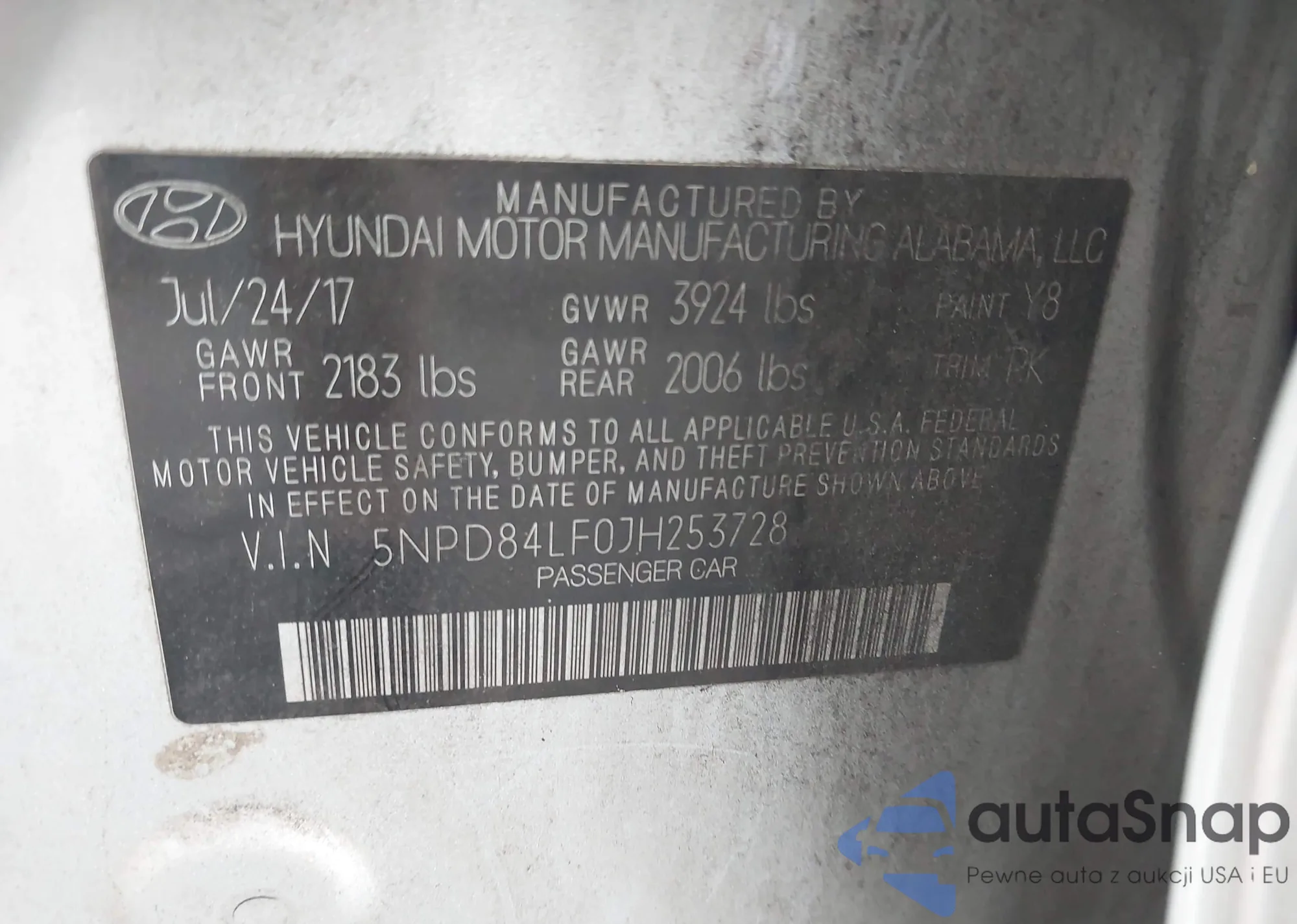 LOT: 43318039 VIN: 5NPD84LF0JH253728