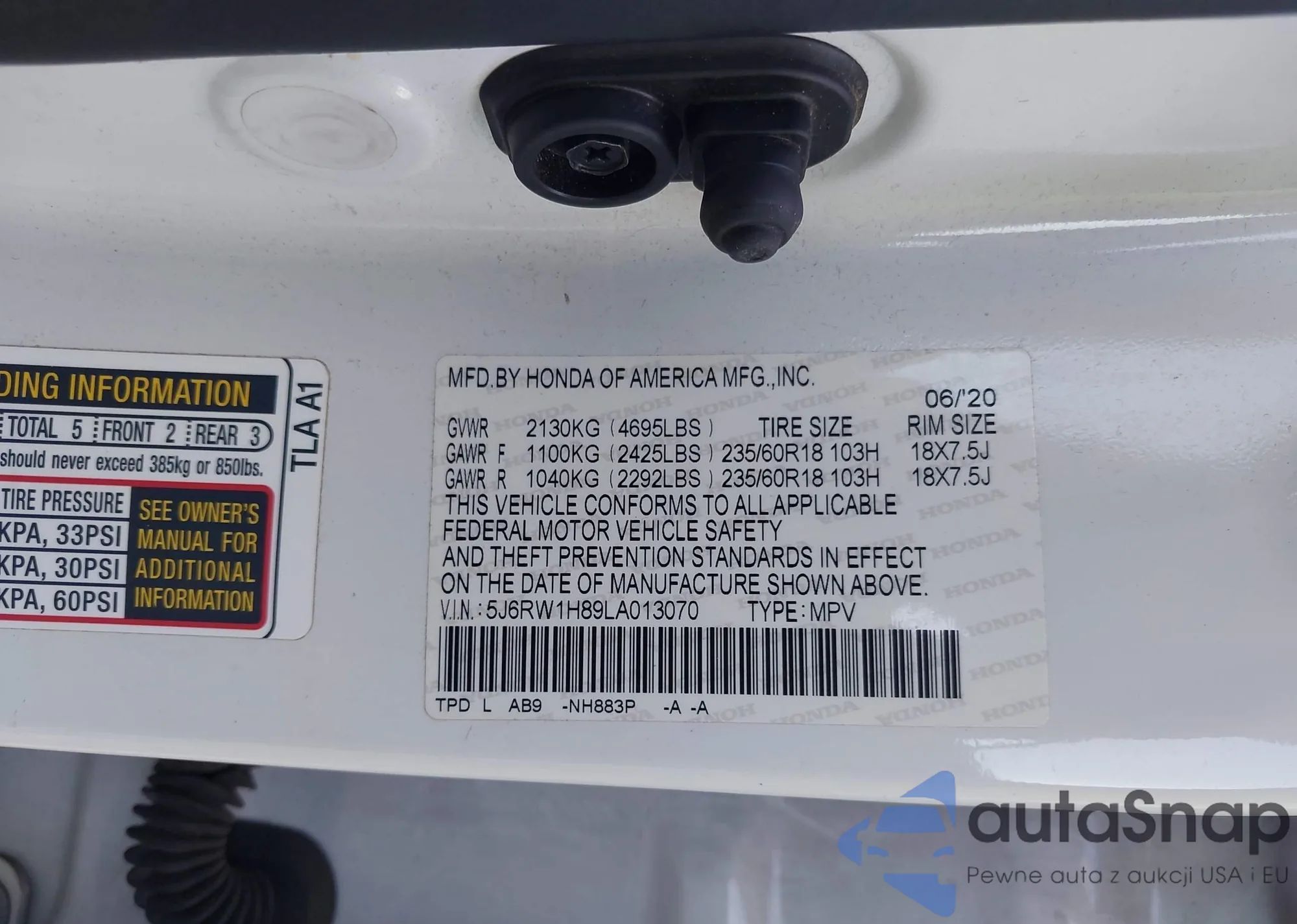 • VIN 5J6RW1H89LA013070