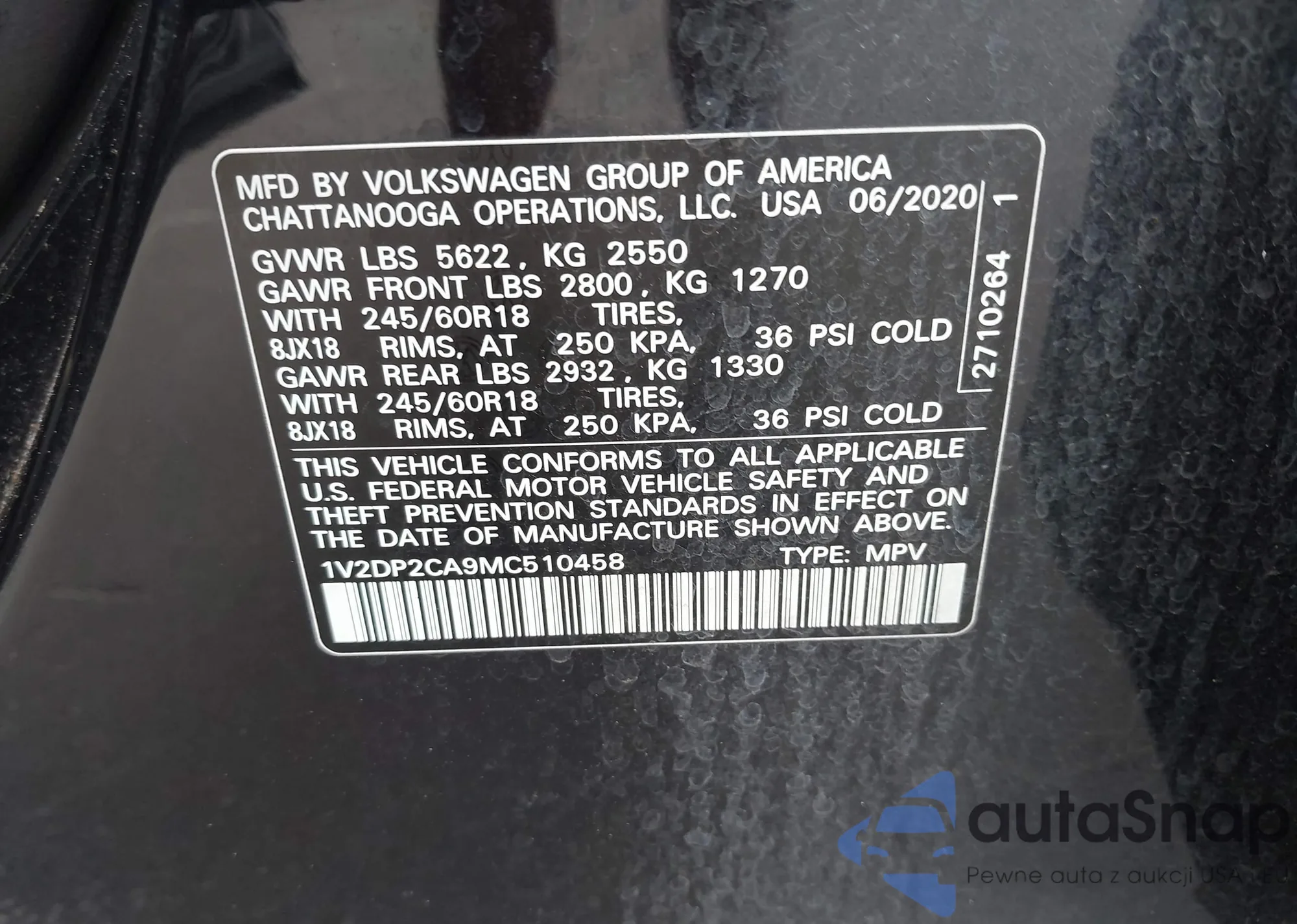 • VIN 3VW5X7BU6SM056161