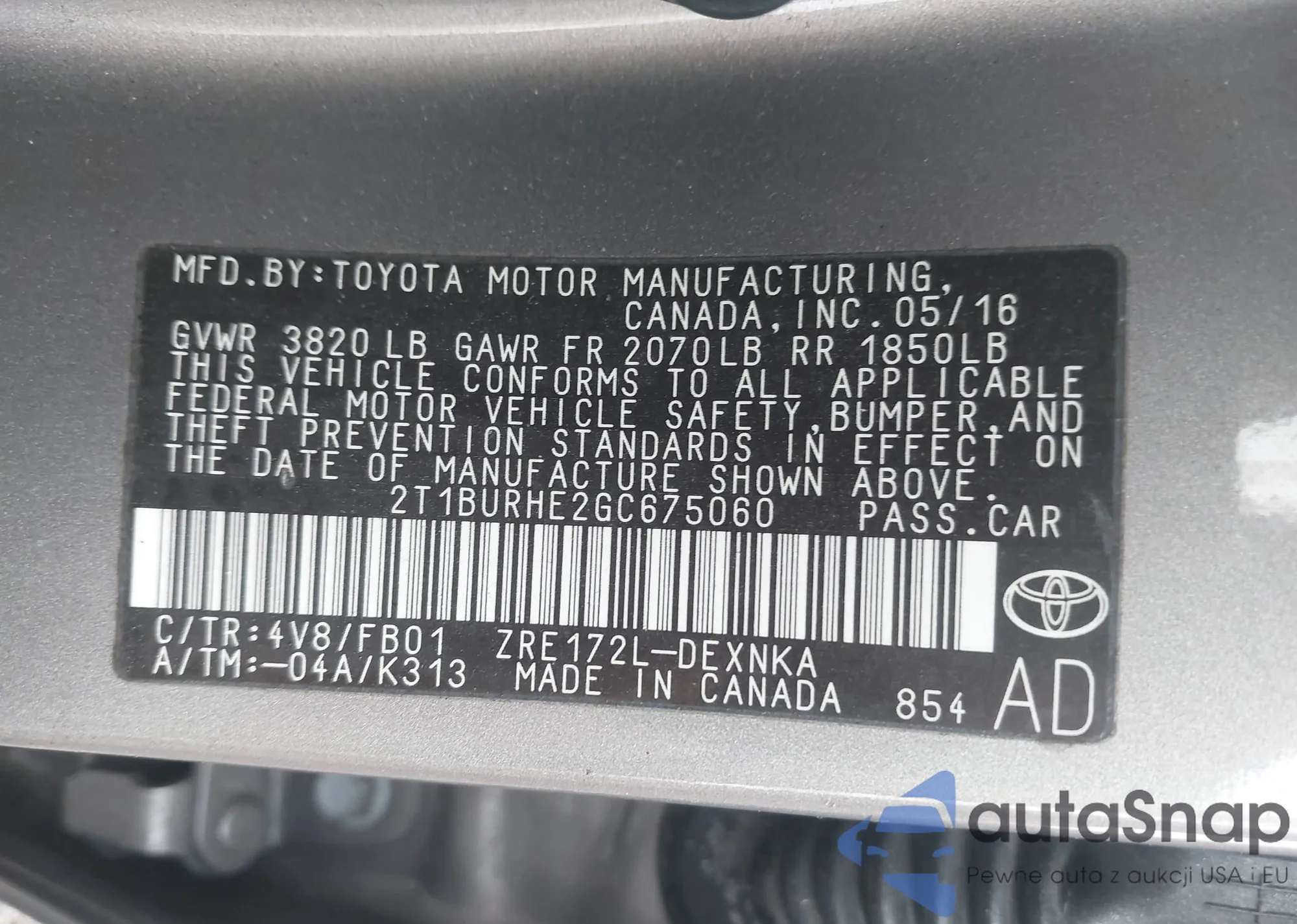 LOT: 43413666 VIN: 2T1BR32E95C470632