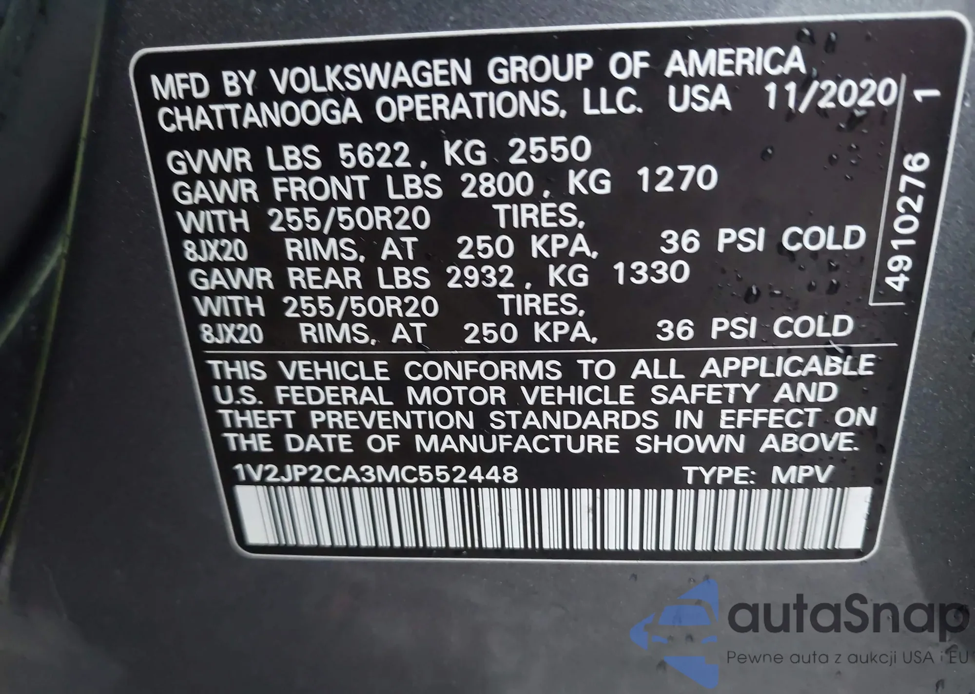 • VIN 1V2JP2CA3MC552448