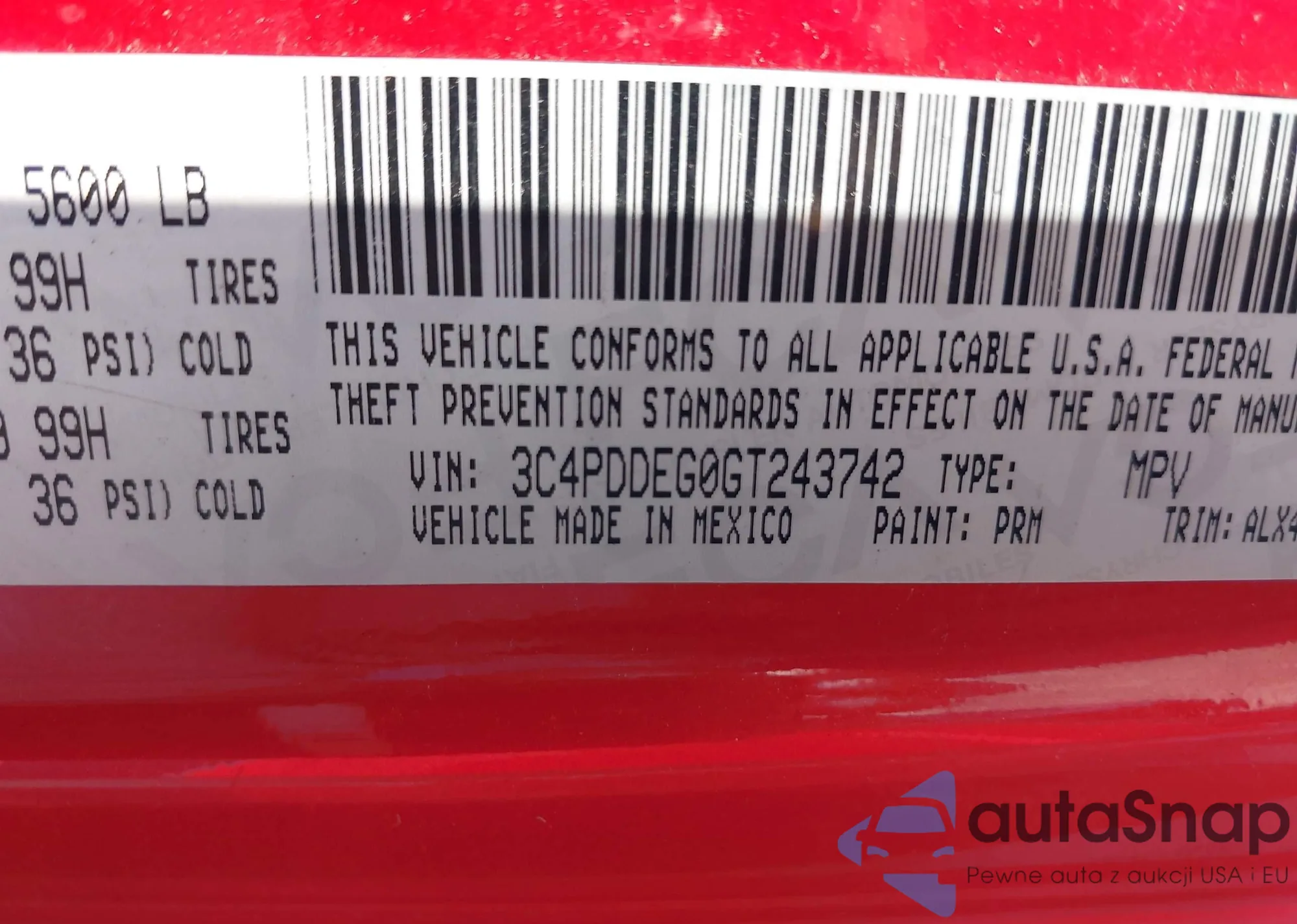 • VIN 3C4PDDEG0GT243742