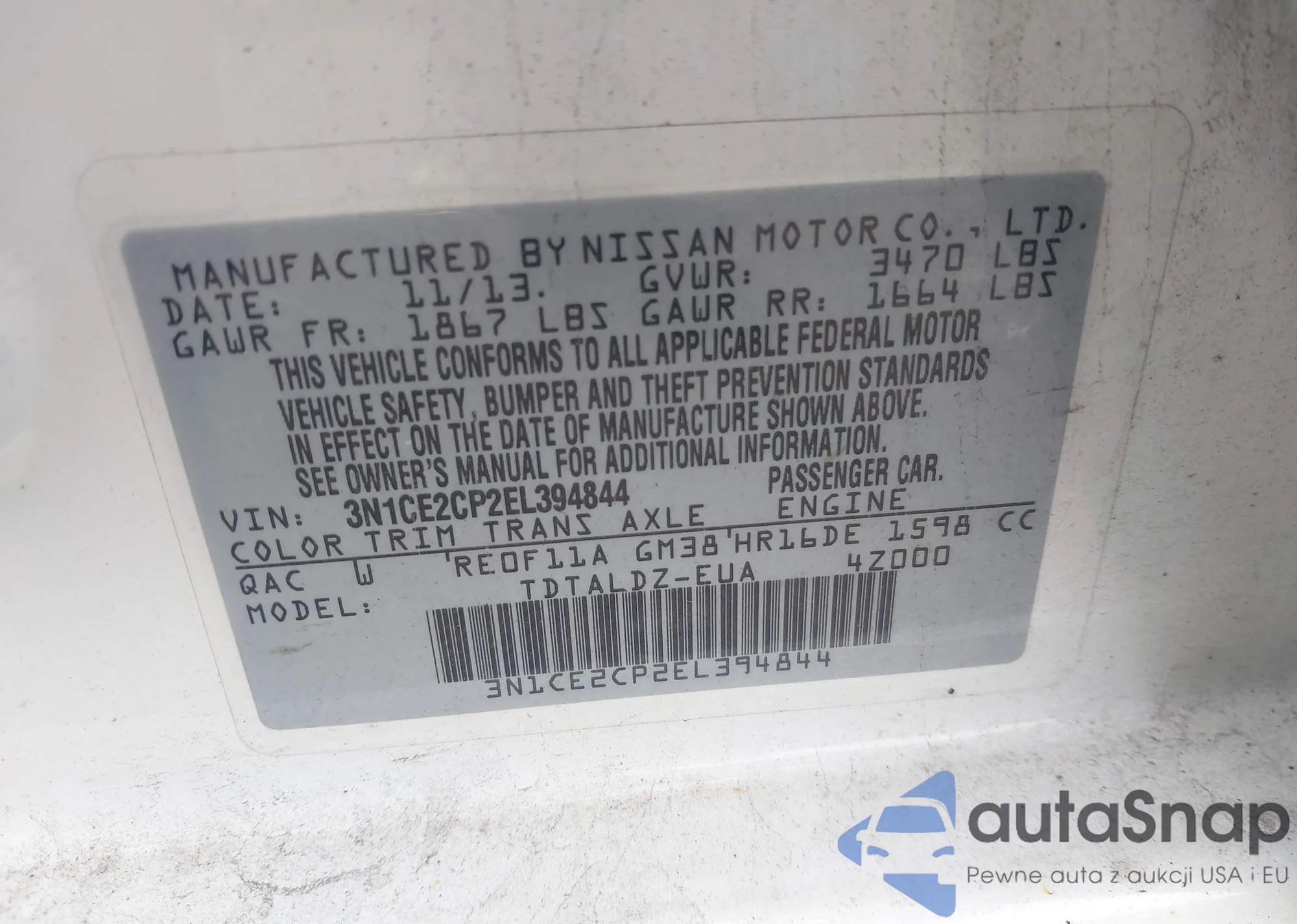 • VIN 3N1CE2CP2EL394844