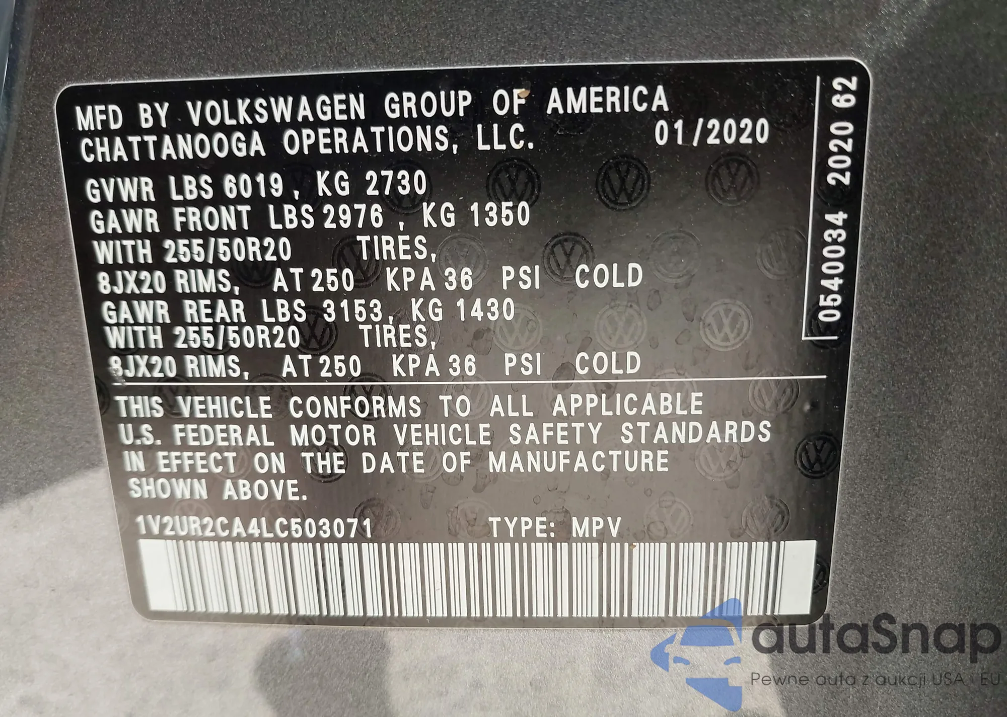 LOT: 42647714 VIN: 1V2UR2CA4LC503071