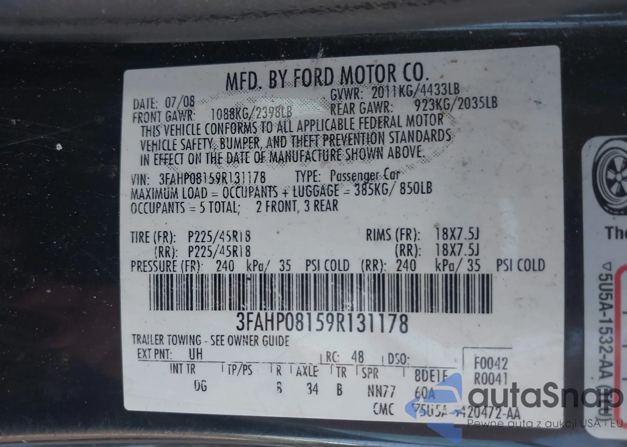 • VIN 3FAHP08159R131178